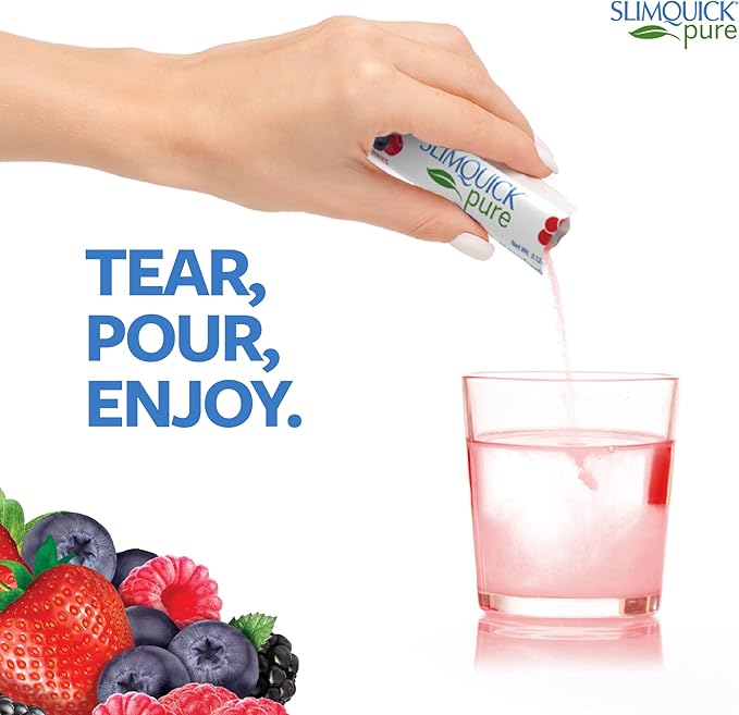 Slimquick Pure 3x Extra Strength Mixed Berry Drink Mix for Women to Help Achieve Weight Goals, Helps Metabolism, Keeps Full for Longer with Green Tea, Caffeine, Chaste Tree, Rhodiola Extract, 26 Count