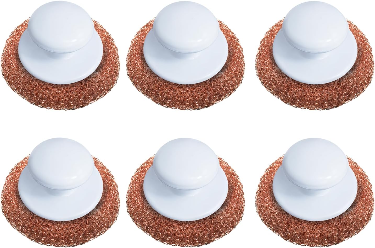 LOLA Copper Mesh Scouring Pad w/Comfort Knob, 6 Pack, Heavy Duty Cleaning Pads, Knitted Wire Mesh, Cleans Caked-On & Baked-On Messes