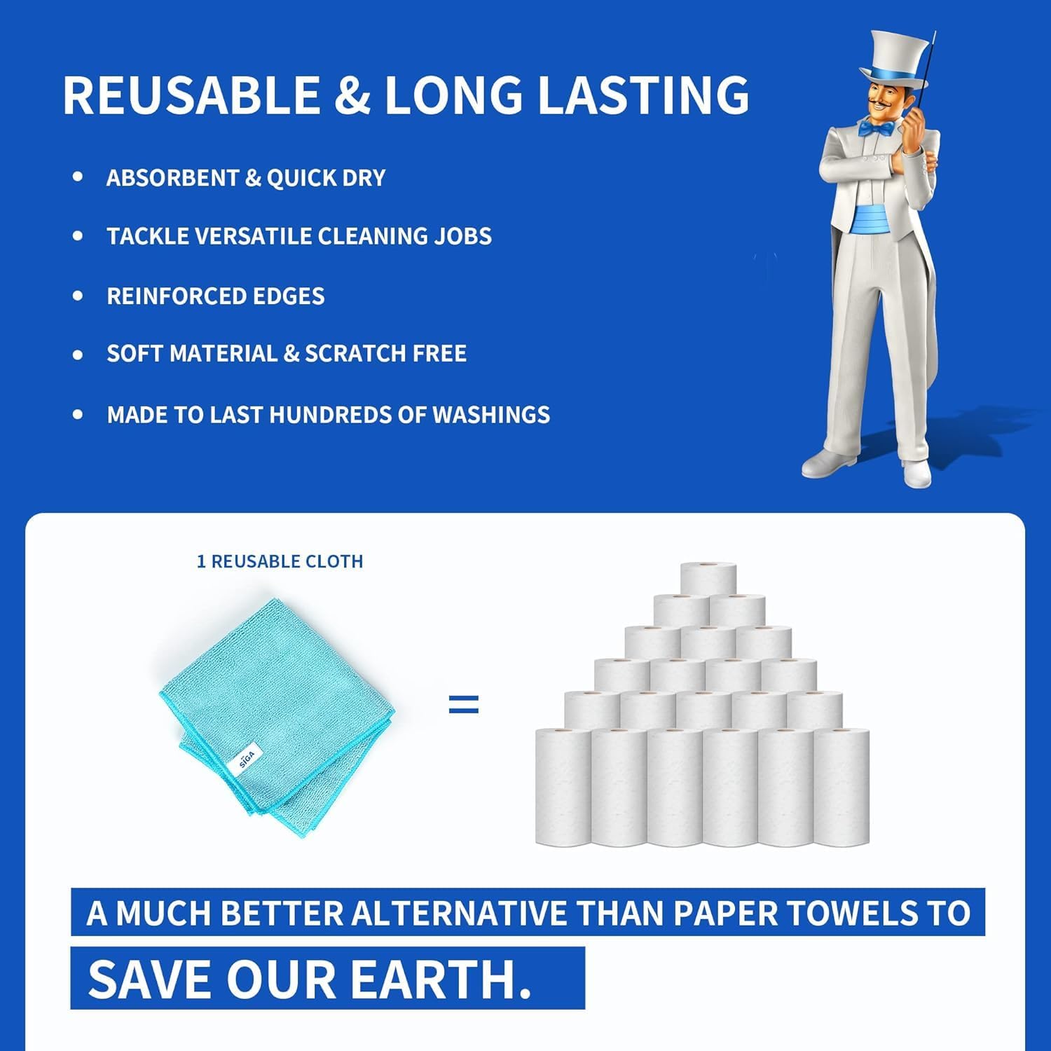 • REUSABLE & LONG LASTING - These microfiber towels feature high quality stitching with reinforced edges, they are durable and made to last hundreds of washings. They are lightweight, super absorbent, use them everyday to enjoy your cleaning.
