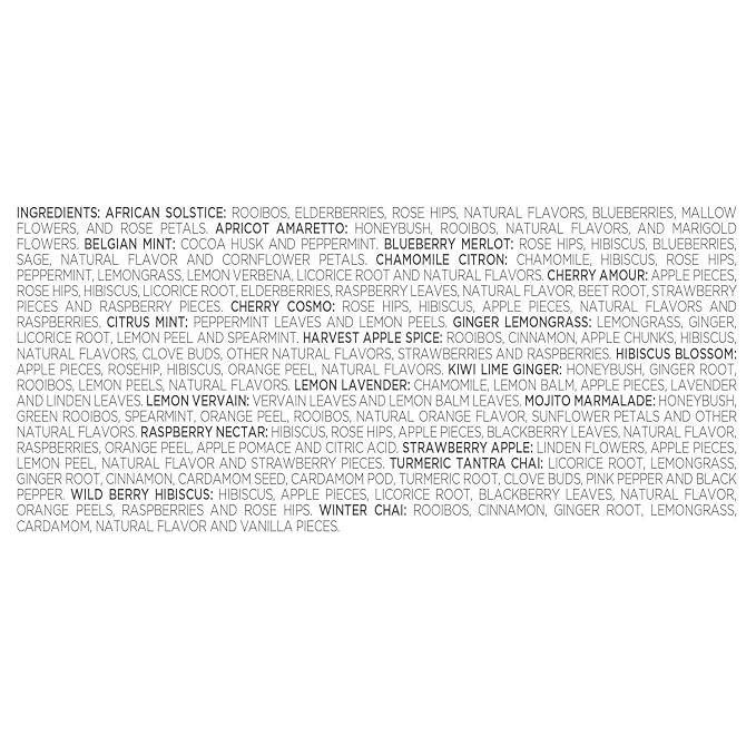 - DIVERSE, SUBTLE FLAVORS from only the finest whole tea leaves in the world, blended with aromatic fruits, spices and herbs