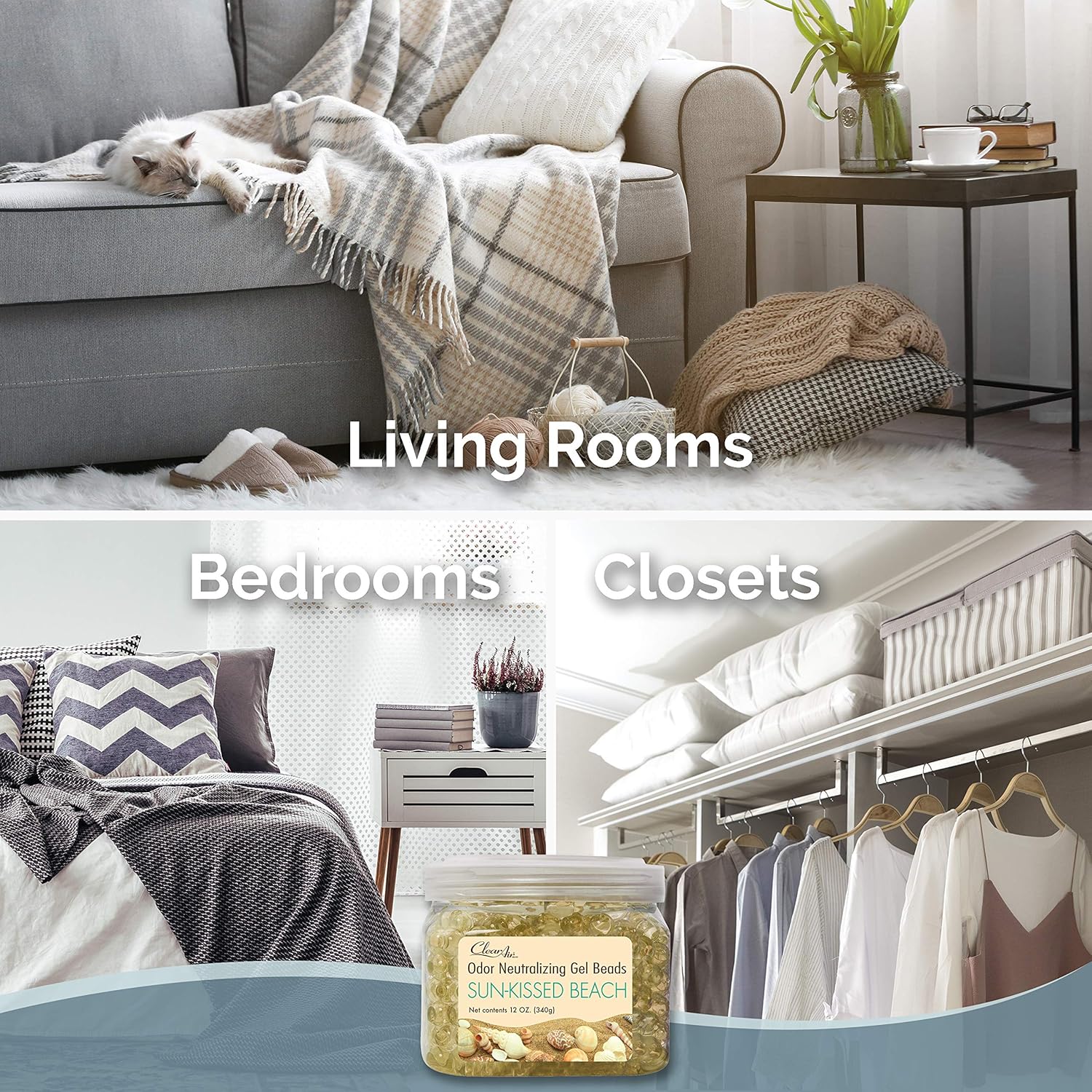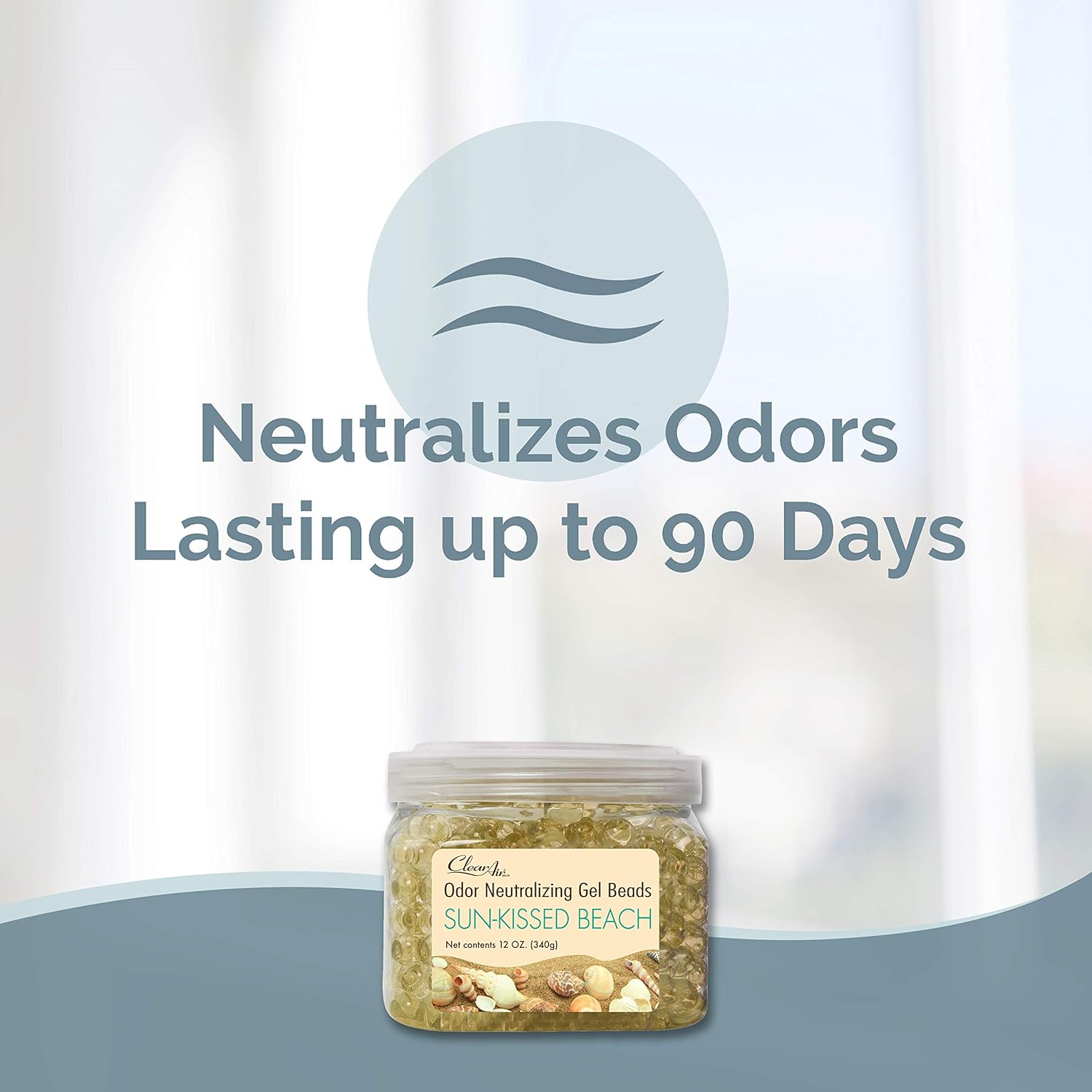 Clear Air Odor Eliminator Gel Beads - 12 oz, Pack of 2 - Air Freshener Made with Essential Oils - Eliminates Odors in Bathrooms, Cars, Boats, RVs & Pet Areas - Sun-Kissed Beach Scent