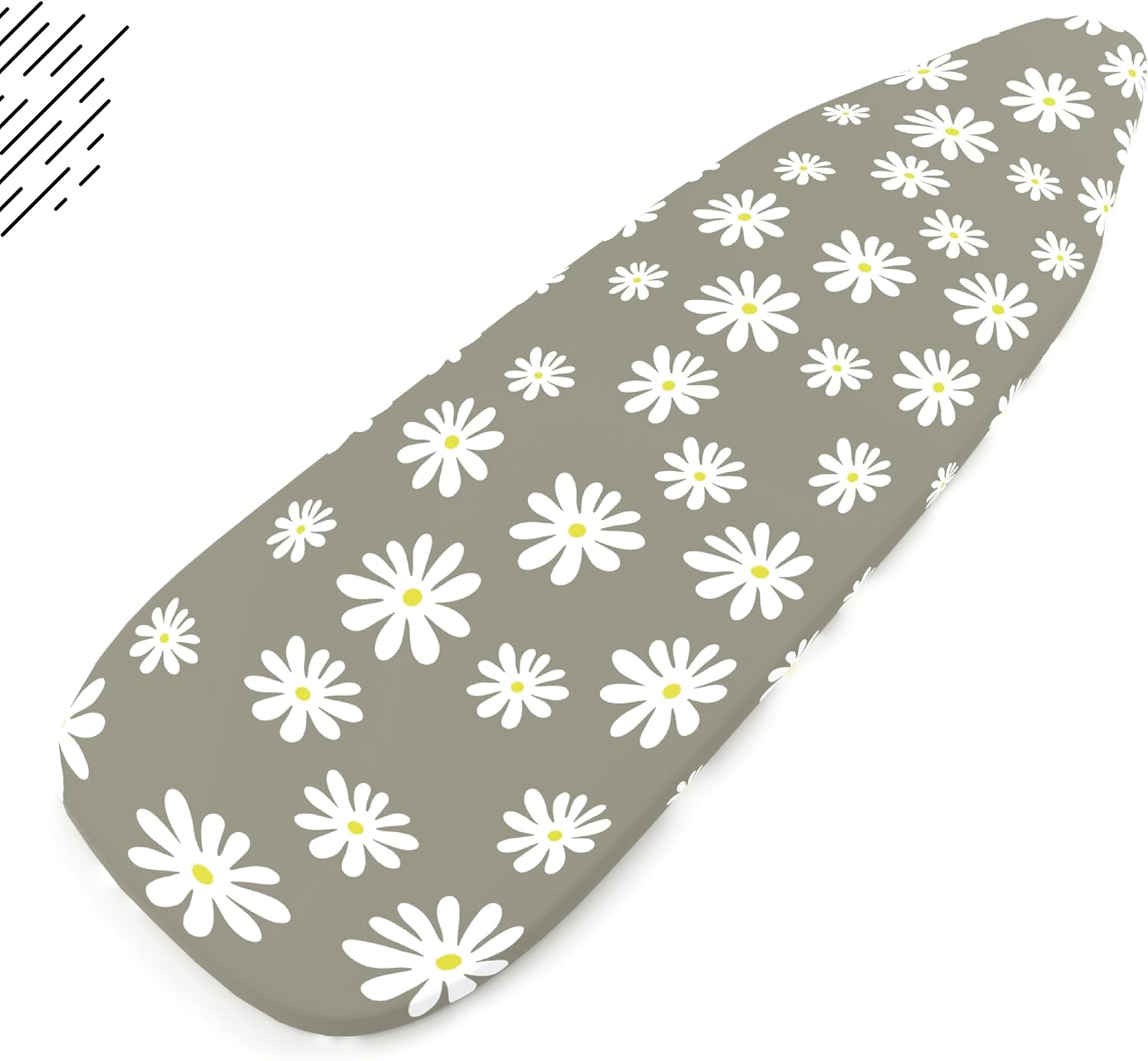 Encasa XO Ironing Board Cover and Pad 54"x15" - Thick 3mm Felt Padding, Drawstring Tightening & Lock, Easy Fit, Scorch & Stain Resistant, Fits Standard Large Ironing Board - Daisy Grey