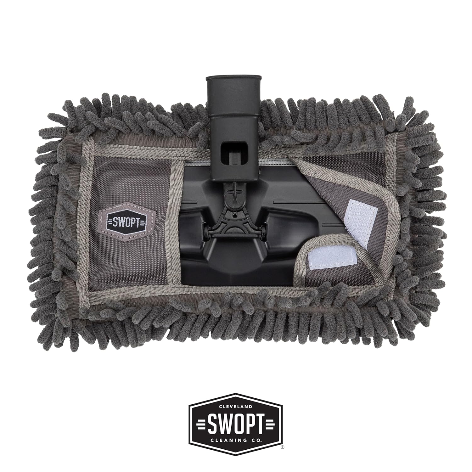 SWOPT 12” Microfiber Dust Mop Head w/Refill — Cleaning Head Interchangeable w/All SWOPT Cleaning Products for Efficient Cleaning & Storage — Mop Provides Lint-Free Cleaning for Wood, Laminate, Tile