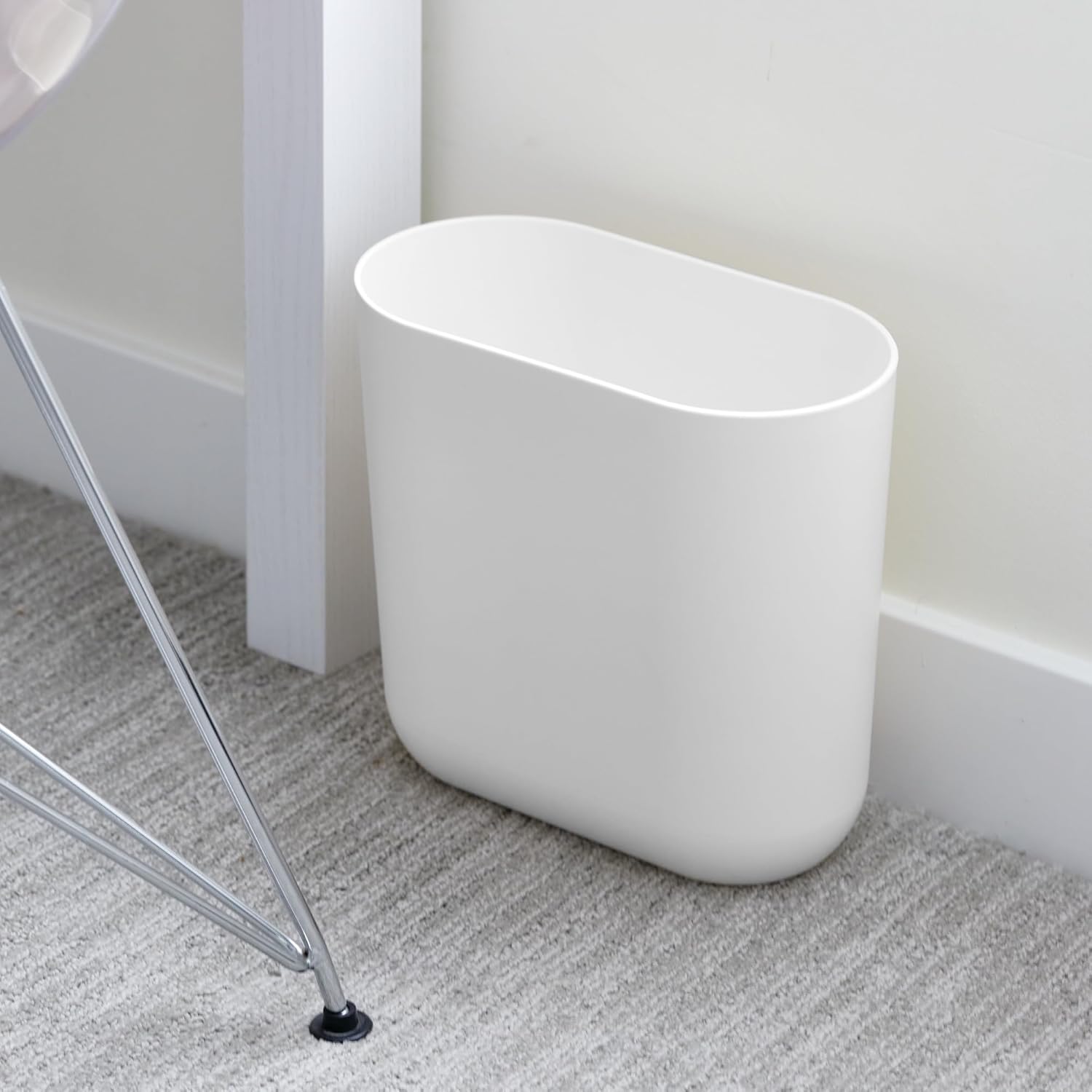 - SMALL WASTE CAN: The oval shape of the iDesign Slim Plastic Trash Can makes it ideal for your bathroom, kitchen, office, bedroom, dorm, craft room, kitchen, living room, or any other tight space to provide convenient trash disposal wherever you need it.