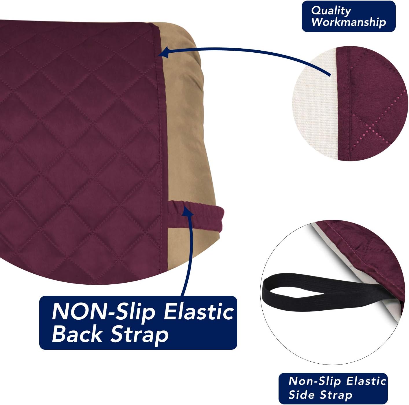 PureFit Reversible Quilted Recliner Sofa Cover, Water Resistant Slipcover Furniture Protector, Washable Couch Cover with Elastic Straps for Kids, Dogs, Pets (Small, Wine/Beige)