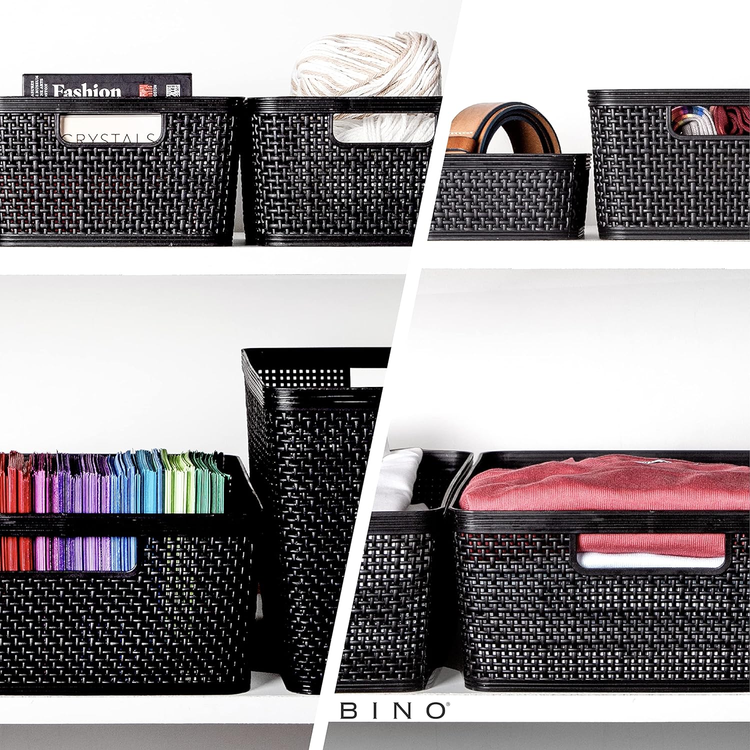 BINO | Woven Plastic Basket | Large (Black), 3-Pack | THE JUTE COLLECTION | Home Organization, Space - Saving Storage, Stylish Design | Jute Basket | Plastic Storage Basket