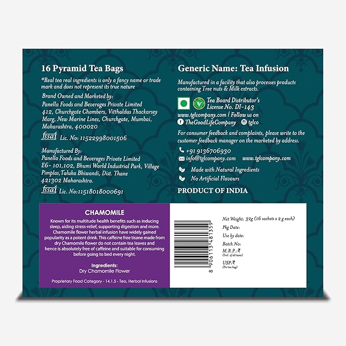TGL Co. Chamomile Tea – 16 Tea Bags | Herbal Caffeine-Free | Soothing Bedtime Blend | Natural & Calming Chamomile Flowers | Premium Loose Leaf Tea in Pyramid Bags