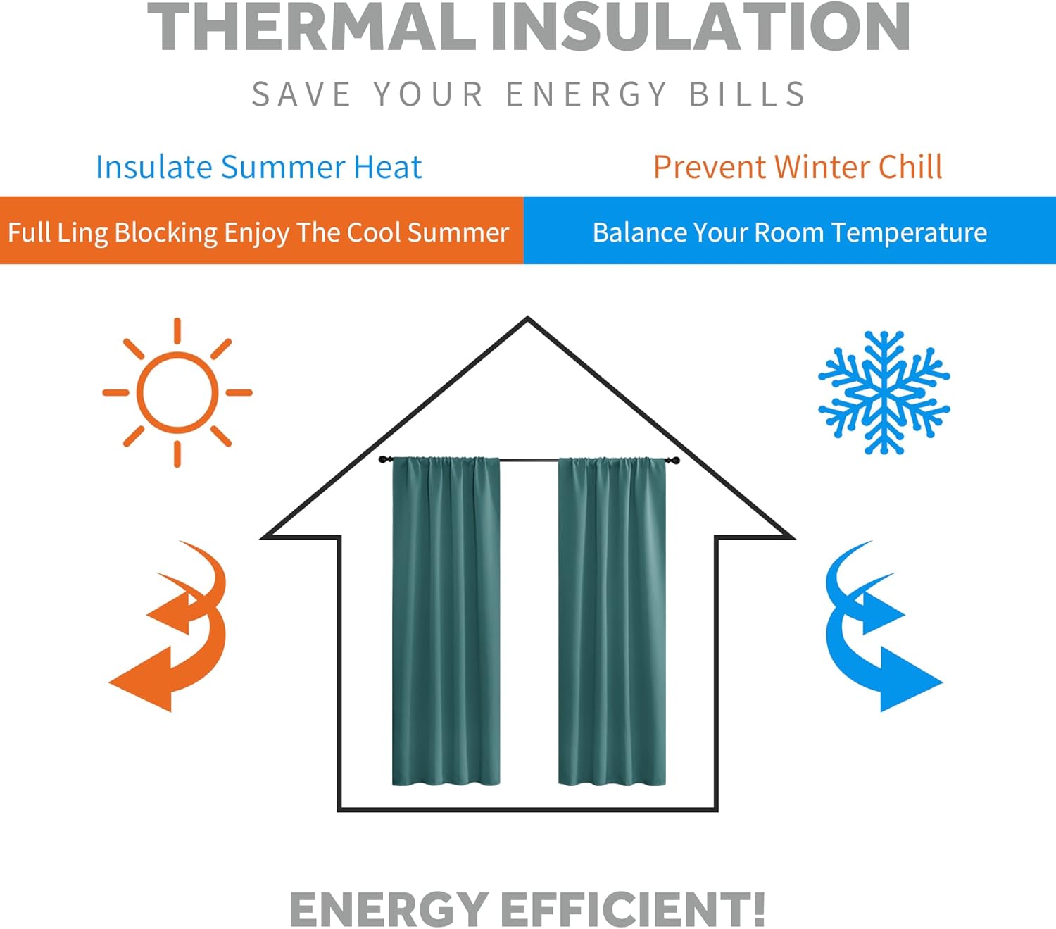 RYB HOME Bedroom Window Curtains, Heat Cold Insulated Drapes for Energy Cost Saving Washable Curtain Set for Living Room Family Engagement Bathroom Sunroom, 42 x 54 inches Long, Teal, 1 Pair