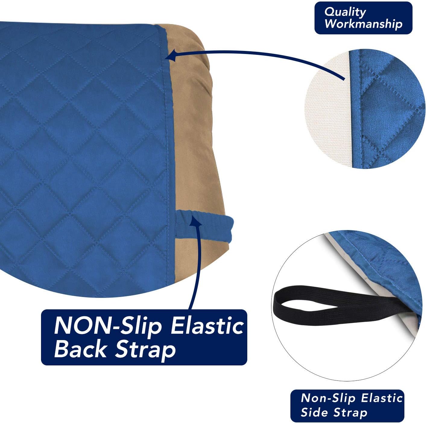 PureFit Reversible Quilted Sofa Cover, Water Resistant Slipcover Furniture Protector, Washable Couch Cover with Non Slip and Elastic Straps for Kids, Dogs, Pets (Small Recliner, Blue/Ivory)