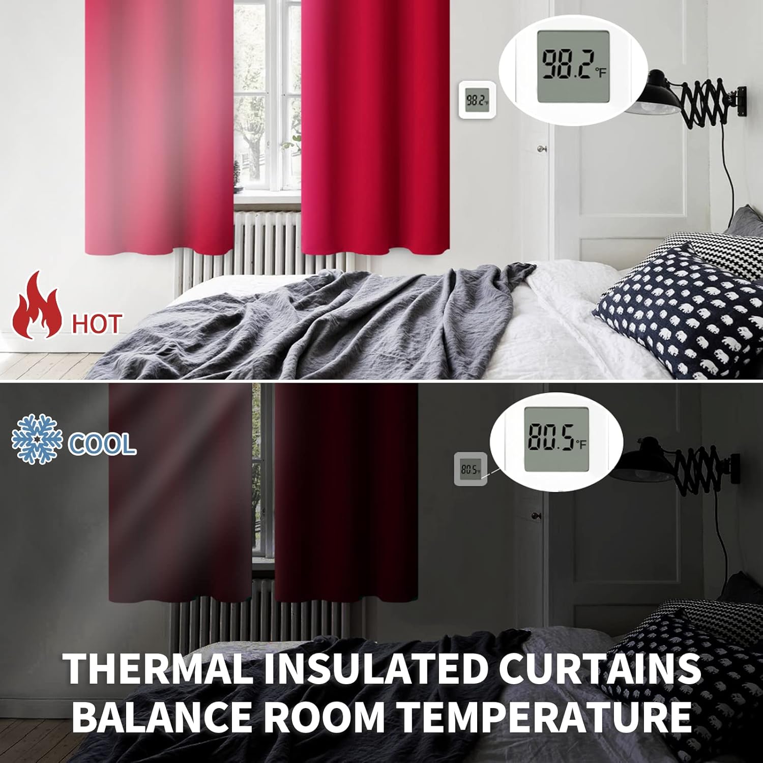 - Package Includes: Set of 2 red blackout curtains; each panel measures 42 Inch wide by 84 Inch long.