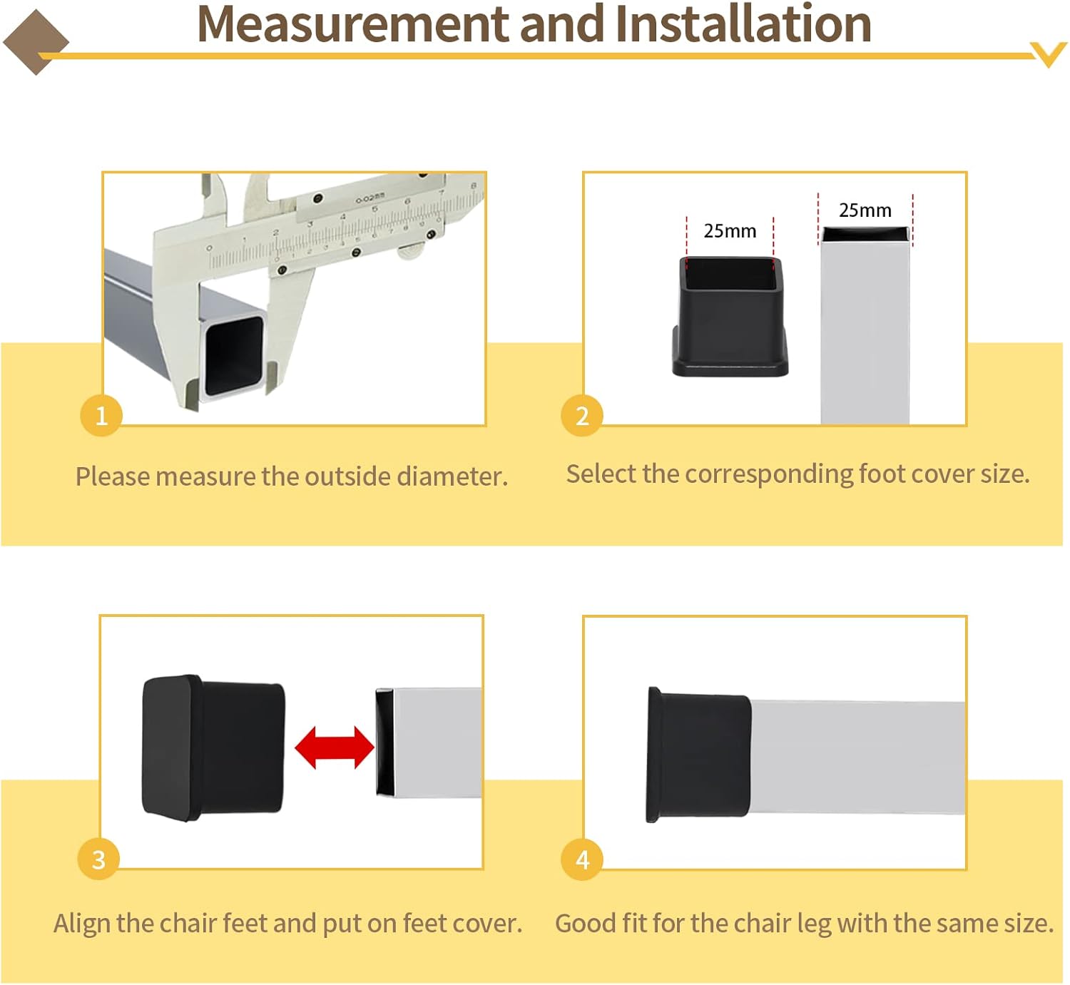- 【Chair Leg Fitting】: Fit Chair Leg Size : 25 x 25 mm, 1" x 1" (L x W)