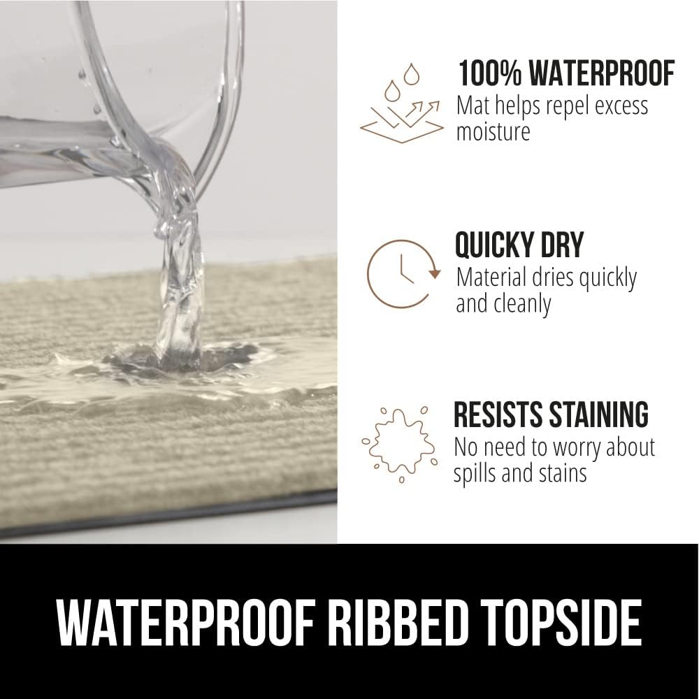 - WATERPROOF RIBBED TOPSIDE: ultra absorbent and 100% waterproof, the mat's surface helps to capture excess water and moisture; plus, premium fabric dries quickly and resists staining and fading for long lasting use