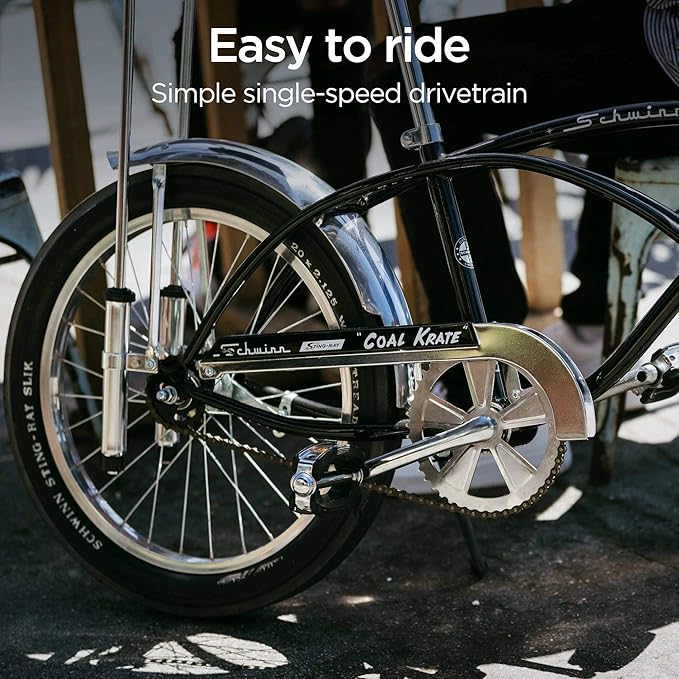 - AUTHENTIC DETAILS: Designed for the ultimate retro look, this bike features a 16-inch front wheel and a 20-inch rear wheel with a real Sting-Ray “Slik” tire. Stylish chrome fenders add to the look while helping protect from splashes.