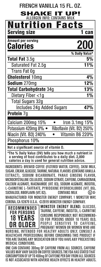 Monster Energy Java 300 Triple Shot Robust Coffee, French Vanilla, 15 Fl Oz (Pack of 12)