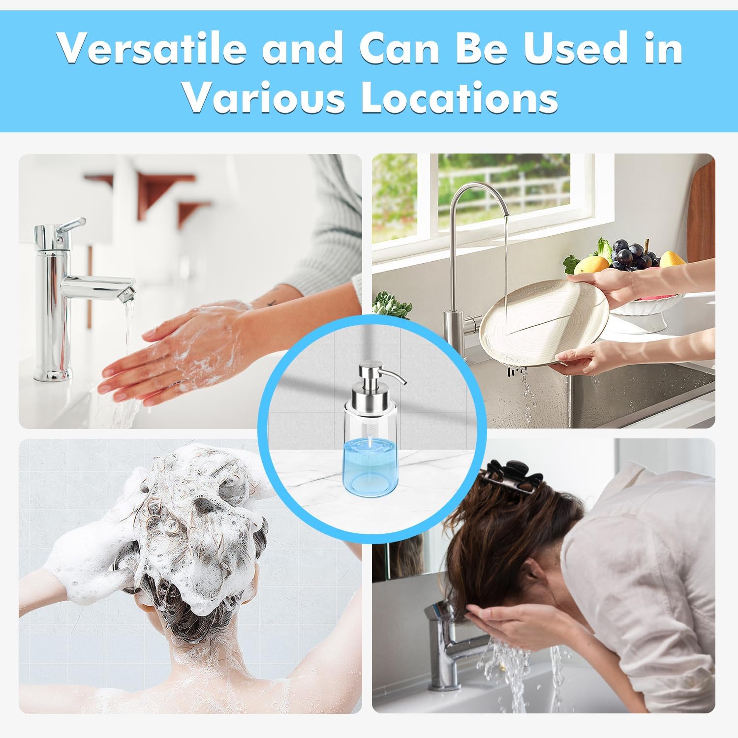 - LARGE CAPACITY & EASY REFILL - This Hand and Dish Soap Dispenser has a generous capacity of 16 oz and a wide opening, facilitating easy refill and cleaning. Measuring 19 * 8 * 8cm / 7.5 * 3.2 * 3.2 inches, it won't occupy excessive space on your countertop. The design is practical and transparent, suitable for various locations in your home