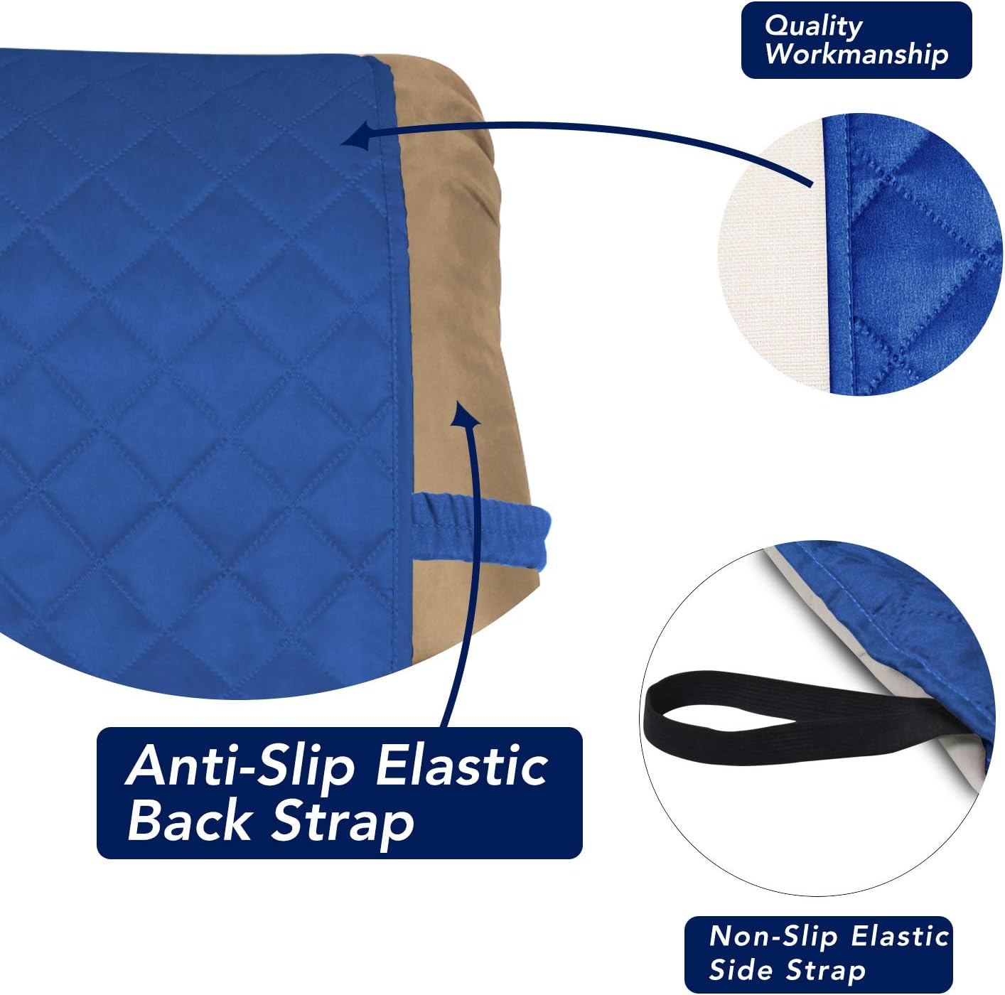 PureFit Reversible Quilted Sofa Cover, Water Resistant Slipcover Furniture Protector, Washable Couch Cover with Non Slip and Elastic Straps for Kids, Dogs, Pets (Small Recliner, Classic Blue/Ivory)