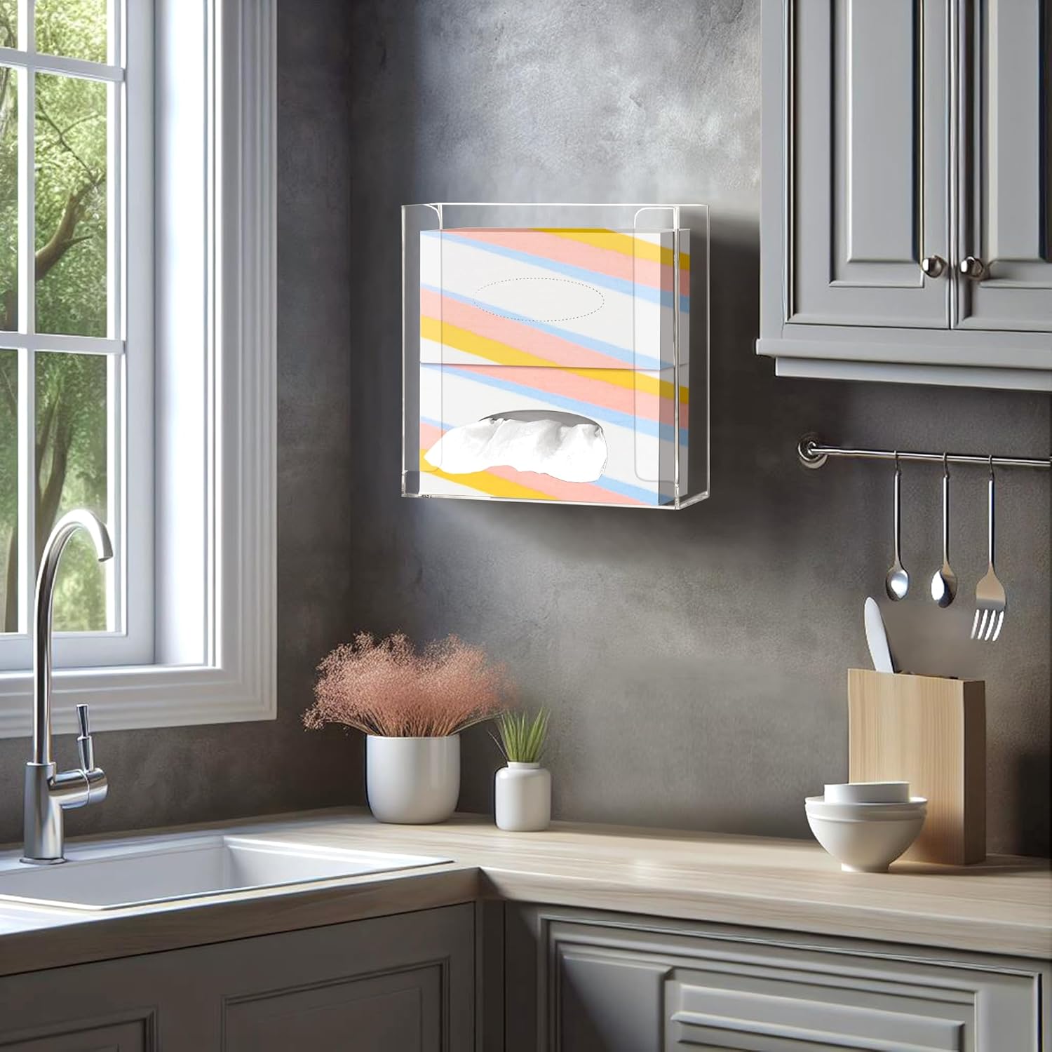 Amazing Abby Acrylic Glove Box Holder, Wall-Mounted Glove Dispenser, Floating Glove Box Organizer, Medium Size (for 2 Boxes), 10.5" W x 10.0" H x 3.5" D (Mounting Hardware Included)