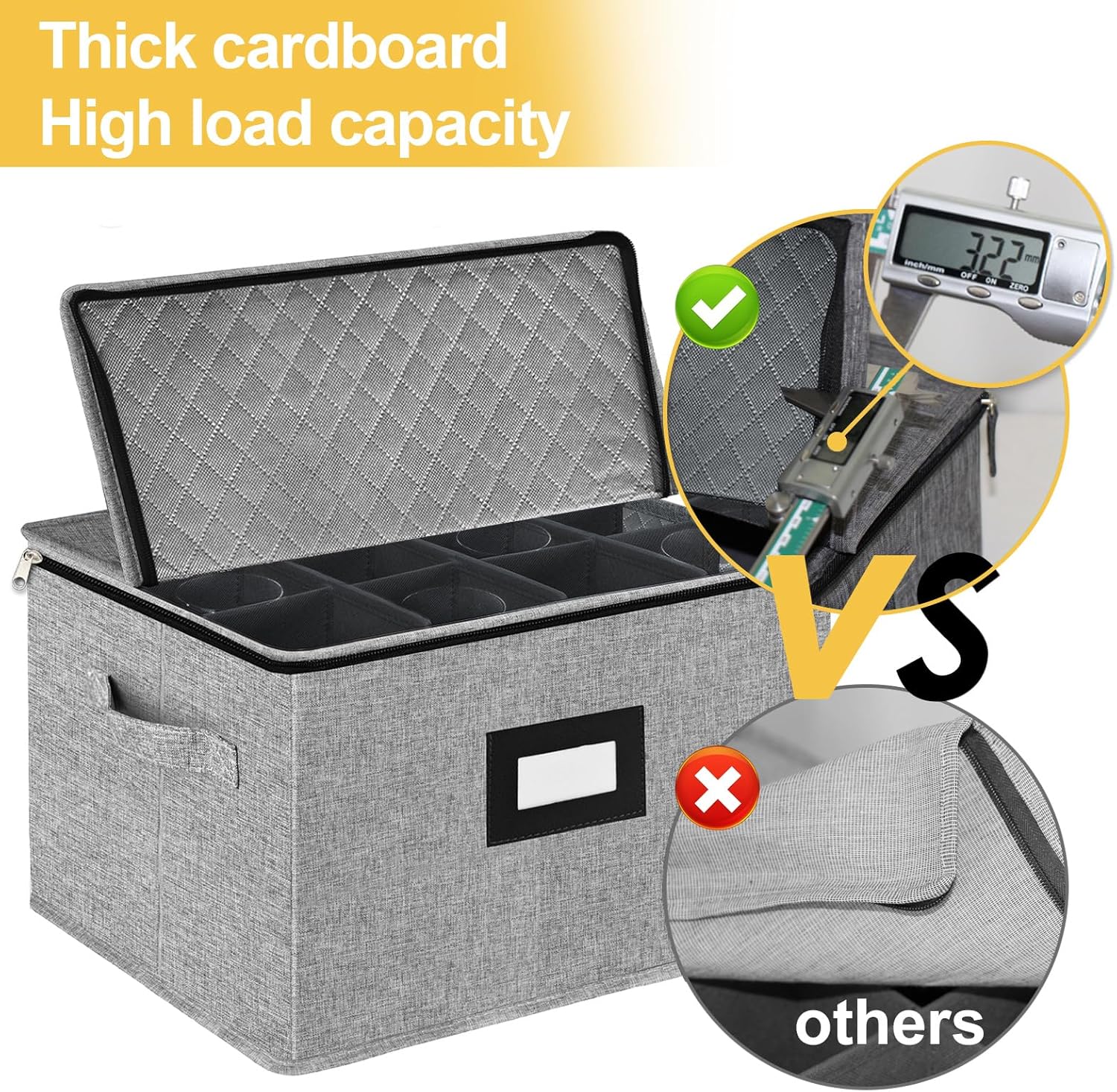 - š· Premium durable material - Stackable wine glasses storage box is made of premium TC fabric and sturdy thick cardboard,the lid made with thick cardboard inside,the side pieces provide additional protection,so it's more sturdy than others.