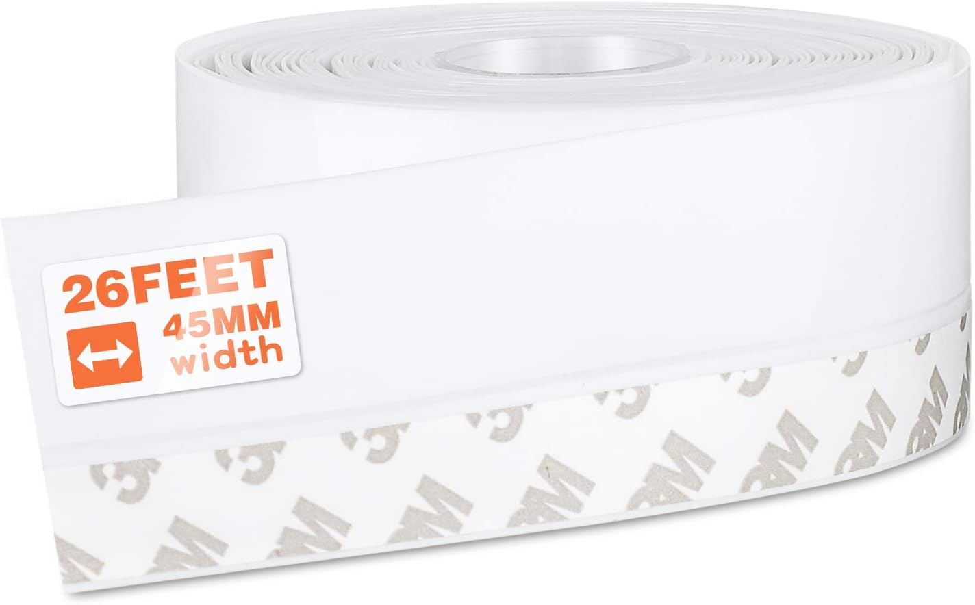 26 Feet Silicone Seal Strip, Weather Stripping Seal Tape for Door, Window & Shower Glass Gaps (White, 45MM)