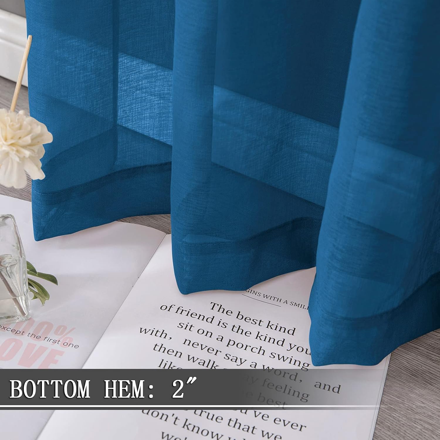 Tollpiz Sheer Curtain Linen Textured Living Room Curtains Sheer Light Filtering Rod Pocket Voile Curtain for Bedroom, 54 x 72 inches Long, Classic Blue, Set of 2 Panels