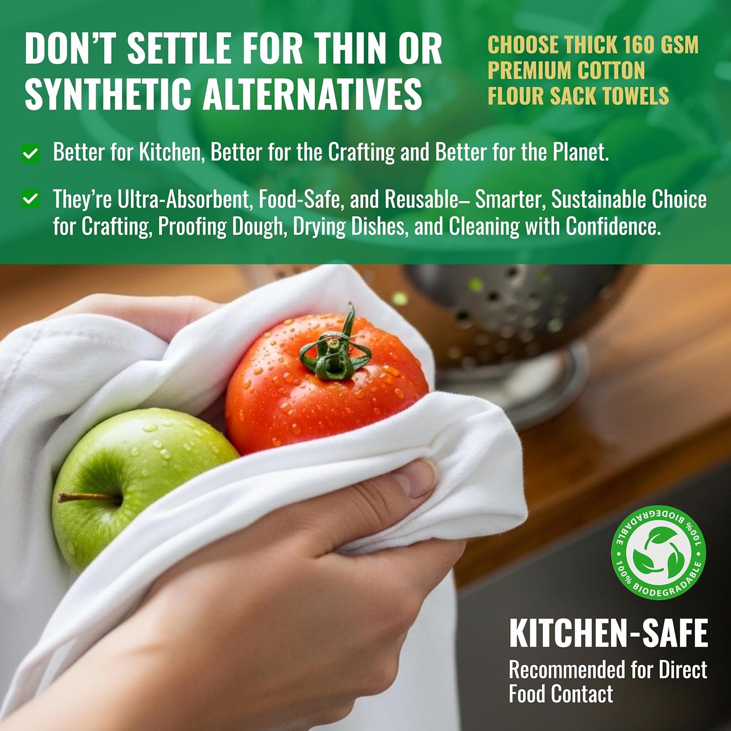 - ✅ Ultra-Thick 160 GSM Flour Sack Towels – Kitchen-Grade Absorbency Tired of thin, ineffective towels? WHITEWRAP’s high-density 160 GSM flour sack towels, made from 100% ring-spun cotton with a 130 thread count, offer exceptional thickness and ideal for drying dishes, wiping, and tough kitchen tasks.