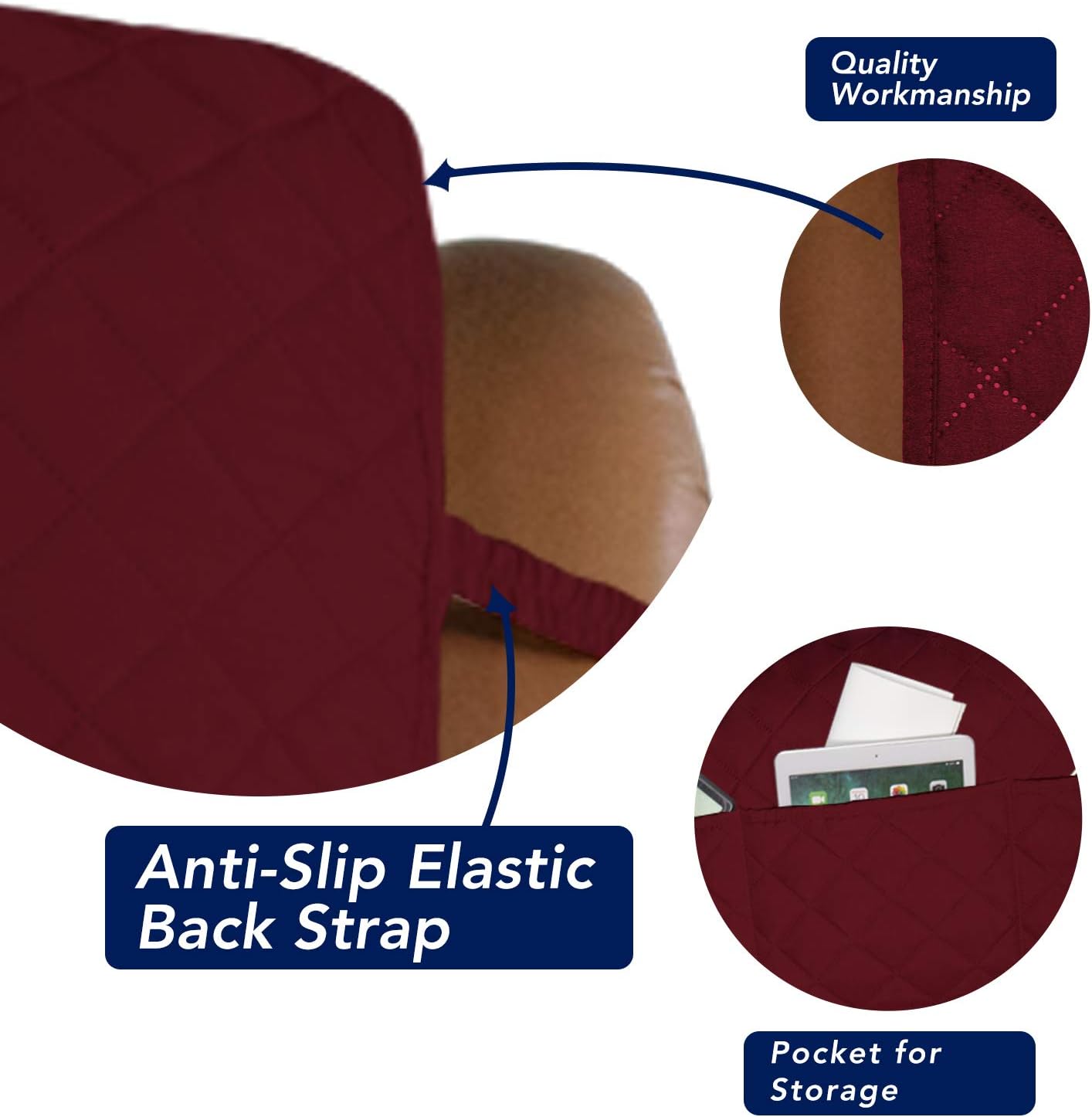 PureFit Reversible Quilted Sofa Cover, Water Resistant Slipcover Furniture Protector, Washable Couch Cover with Non Slip and Elastic Straps for Kids, Dogs, Pets (Oversized Recliner, Red/Ivory)