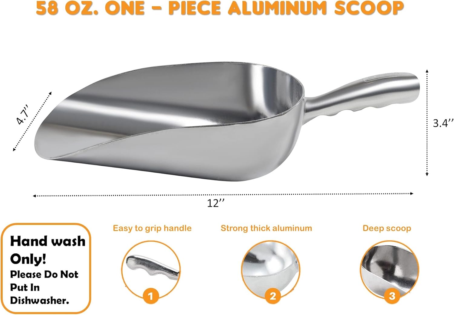 Cast Aluminum Utility Scoop - 58 oz. - Round Bottom, ice scoop For Multi-Purpose Use, With Finger Groove Handle (58 oz.)