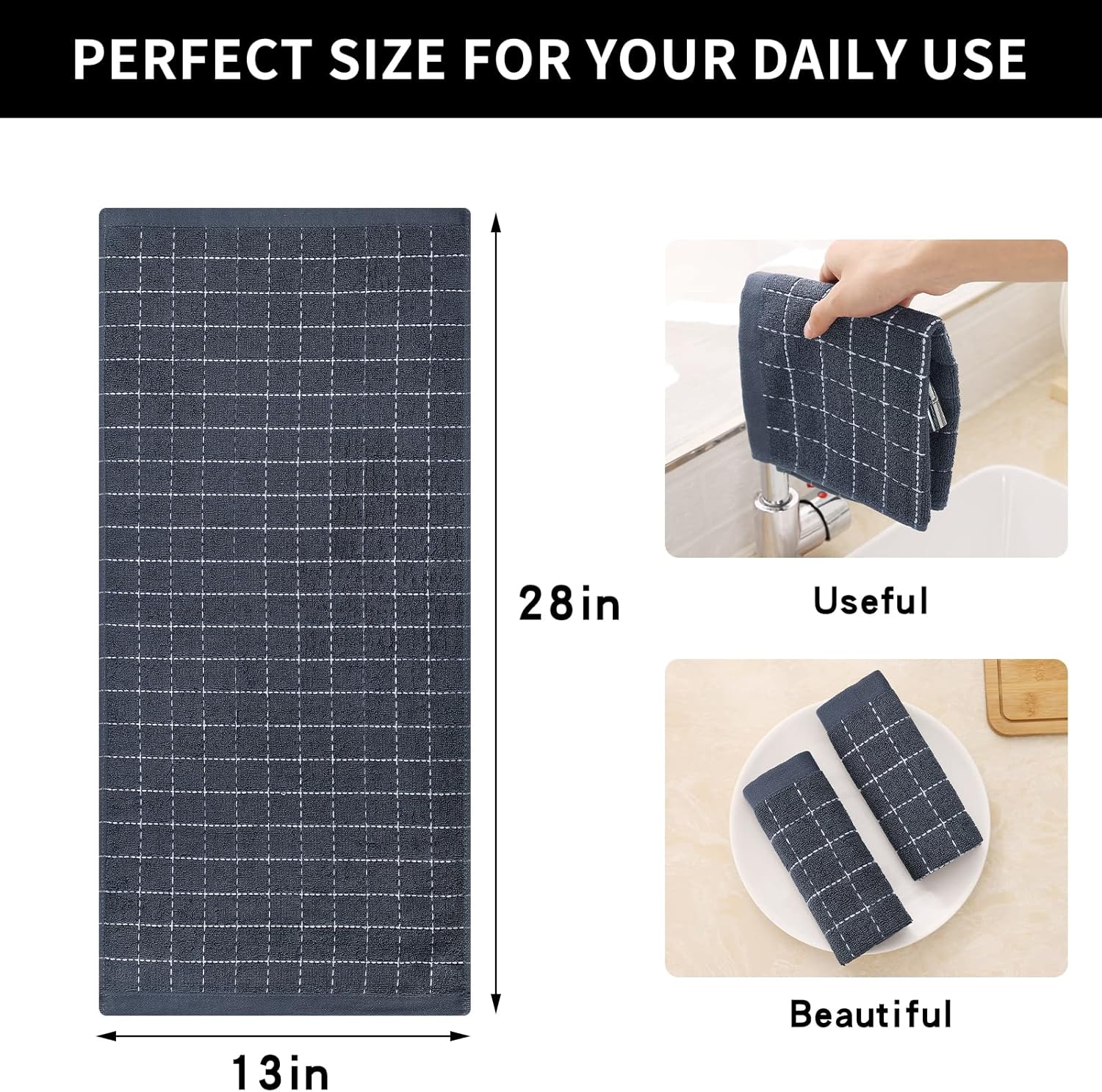 Homaxy 100% Cotton Terry Kitchen Towels(Dark Grey, 13 x 28 inches), Checkered Designed, Soft and Super Absorbent Dish Towels, 4 Pack