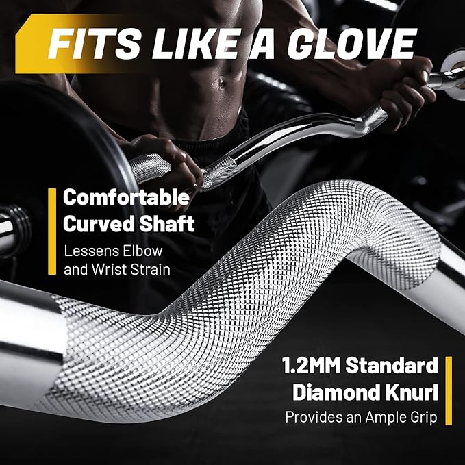 - Comfortable Curved Shaft: The ergonomically designed curved shaft of our curl bar ensures optimal comfort and effectiveness. By placing your hands in a natural position, it reduces strain on your elbows and wrists, allowing you to focus on your biceps and triceps. You can also achieve a targeted and intense workout that activates your muscles.