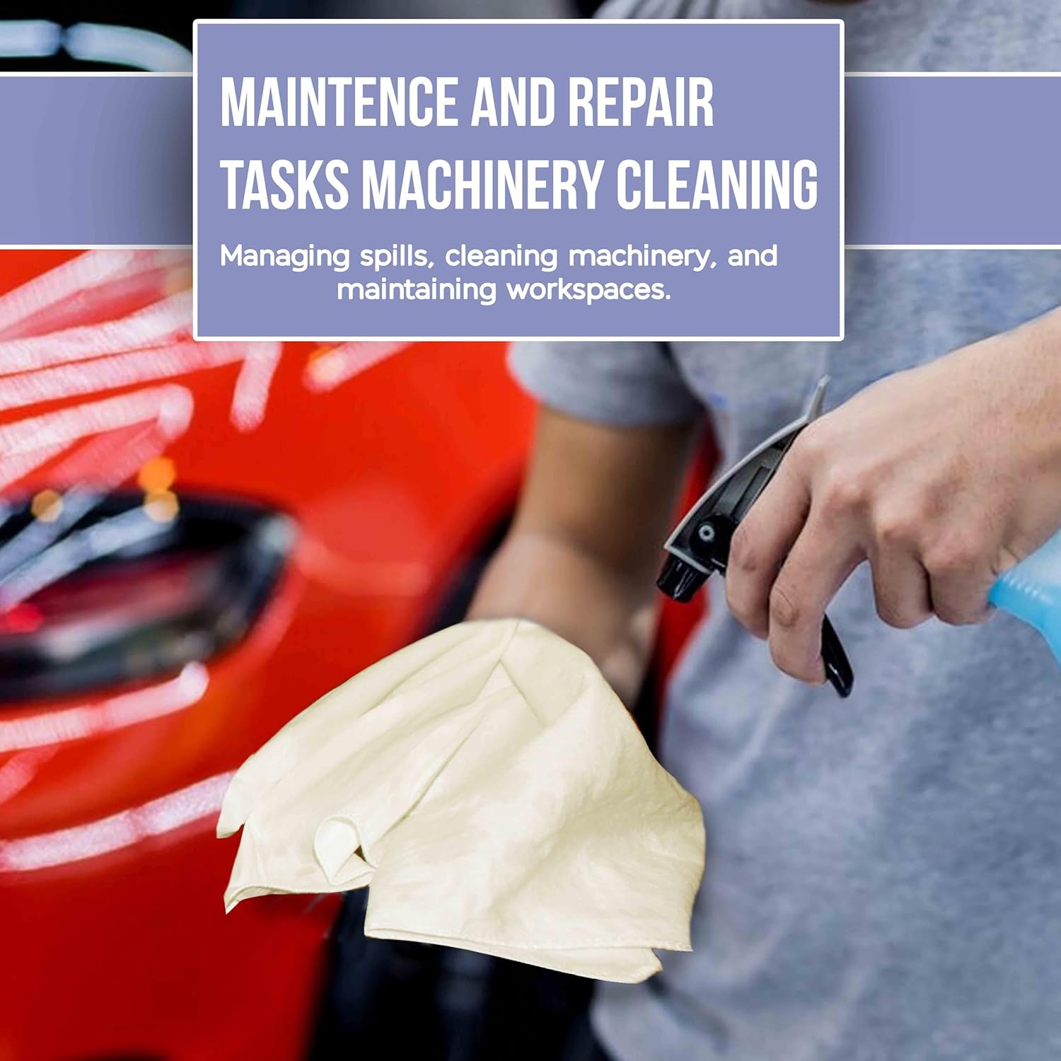 WHITEWRAP Shop Towels| Multipurpose Commercial and Residential Shop Cleaning|Car Wash, Polish, Housewares, Coffee Machine, Restaurant, Bathrooms, Electronics, Auto Garage | 50Pack 14"x12" Natural