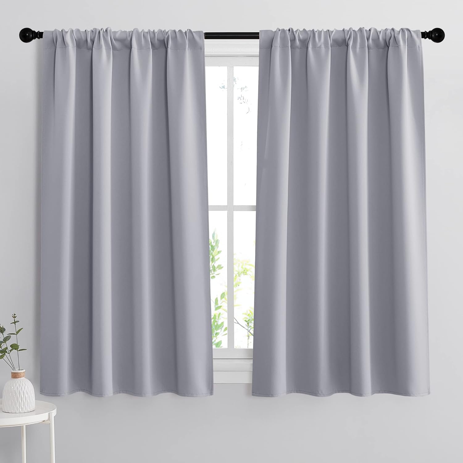 RYB HOME Blackout Curtains for Bedroom - Small Window Treatment Panels Full Privacy Thermal Insultaed Solar Drapes for Bathroom Dining Basement, Wide 42 x Long 45, Silver Grey, 2 Pcs