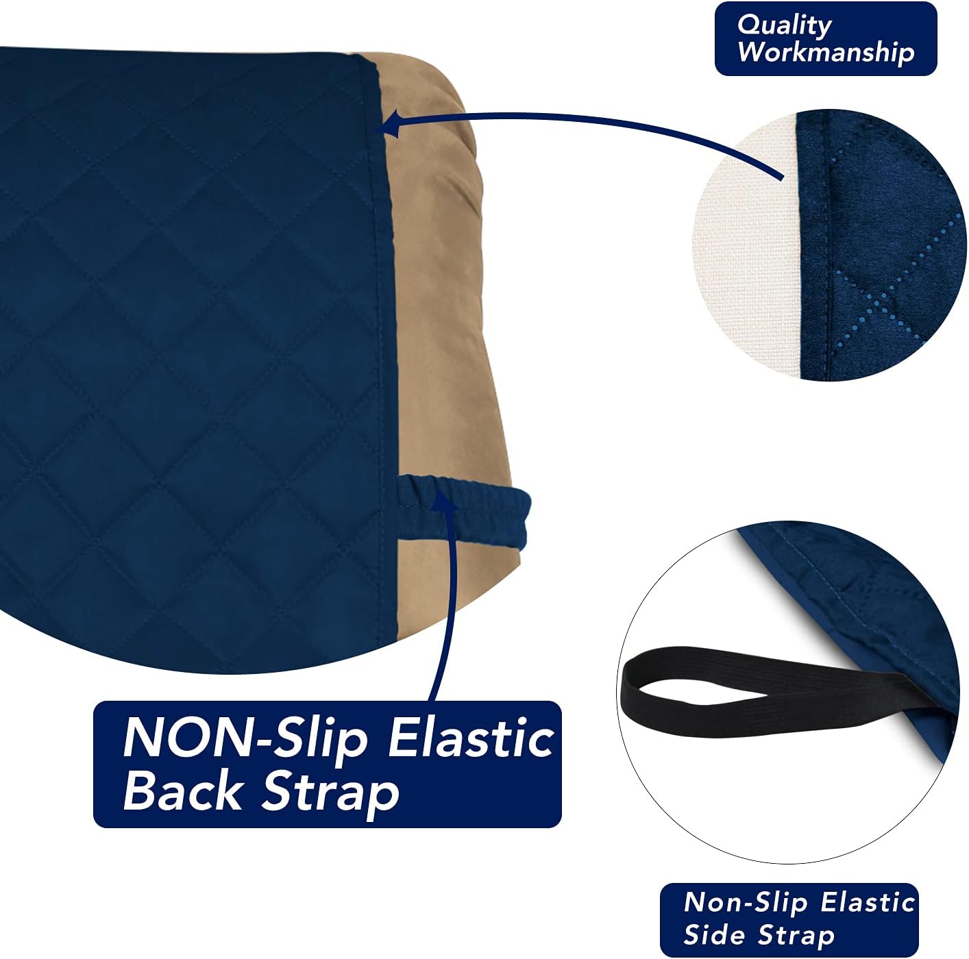 PureFit Reversible Quilted Oversized Recliner Sofa Cover, Water Resistant Furniture Protector, Washable Couch Cover with Elastic Straps for Kids, Pets (Small, Navy/Navy)