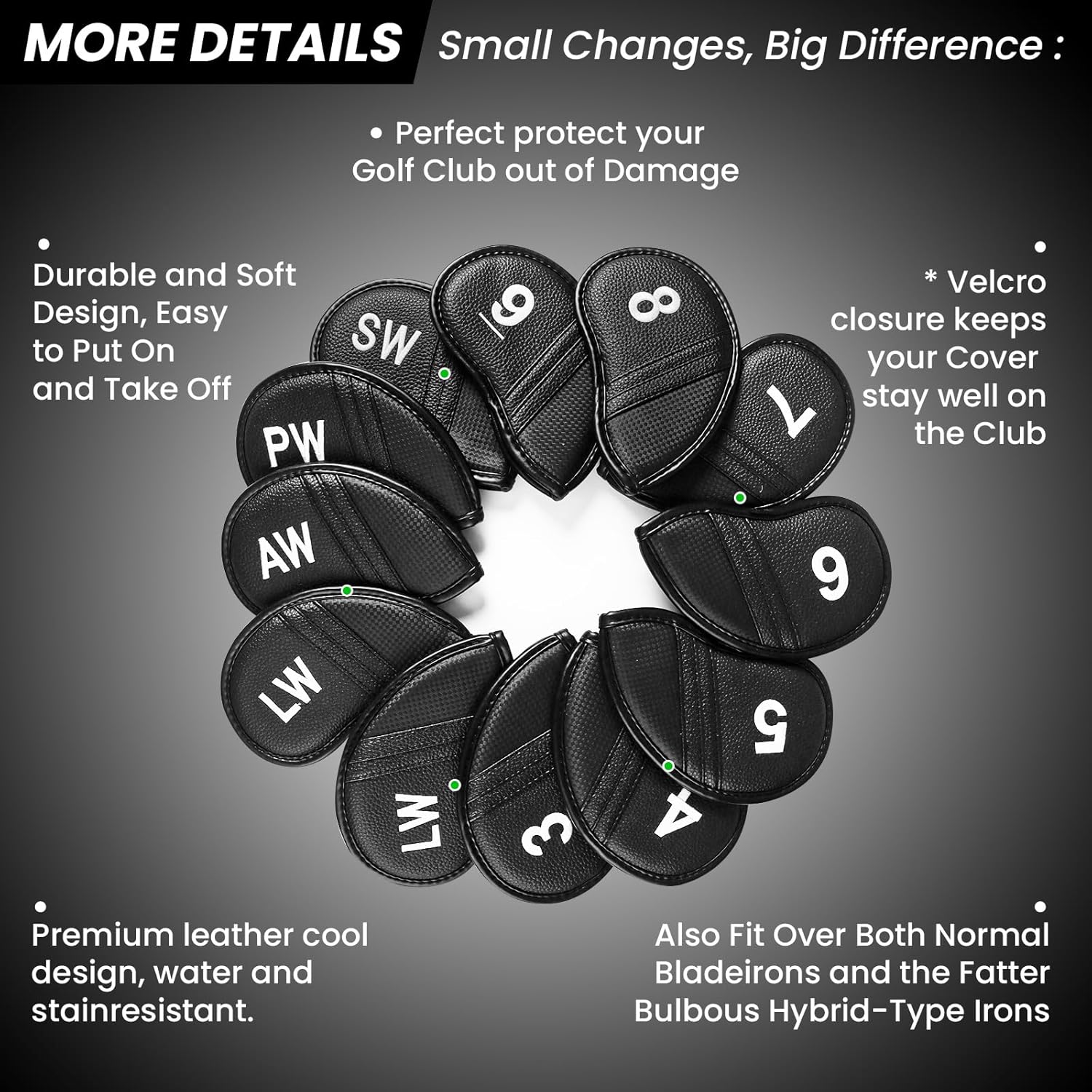 Amy Sport Golf Iron Head Covers Value 12 Pcs Set Thick Synthetic Leather, Protection Weatherproof Club Headcover Fit Universal Main Iron Wedge Golf Clubs for Men Women
