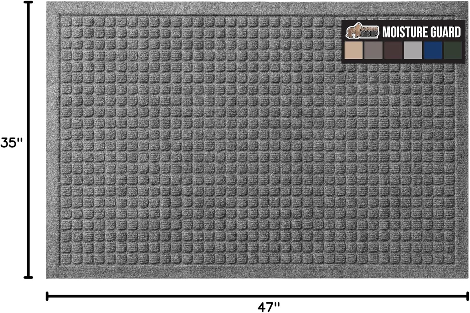 GORILLA GRIP Front Door Mat, 47x35, Indoor Outdoor Ultra Absorbent HydroAbsorb Doormat, Absorbs Up to 6 Cups of Water, Stain and Fade Resistant, Rubber Backing Doormats, Captures Dirt, Gray