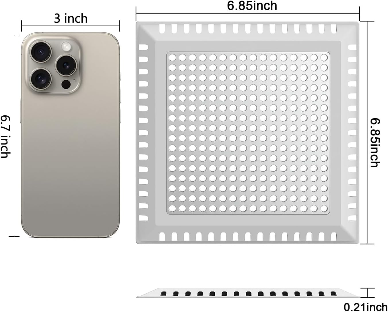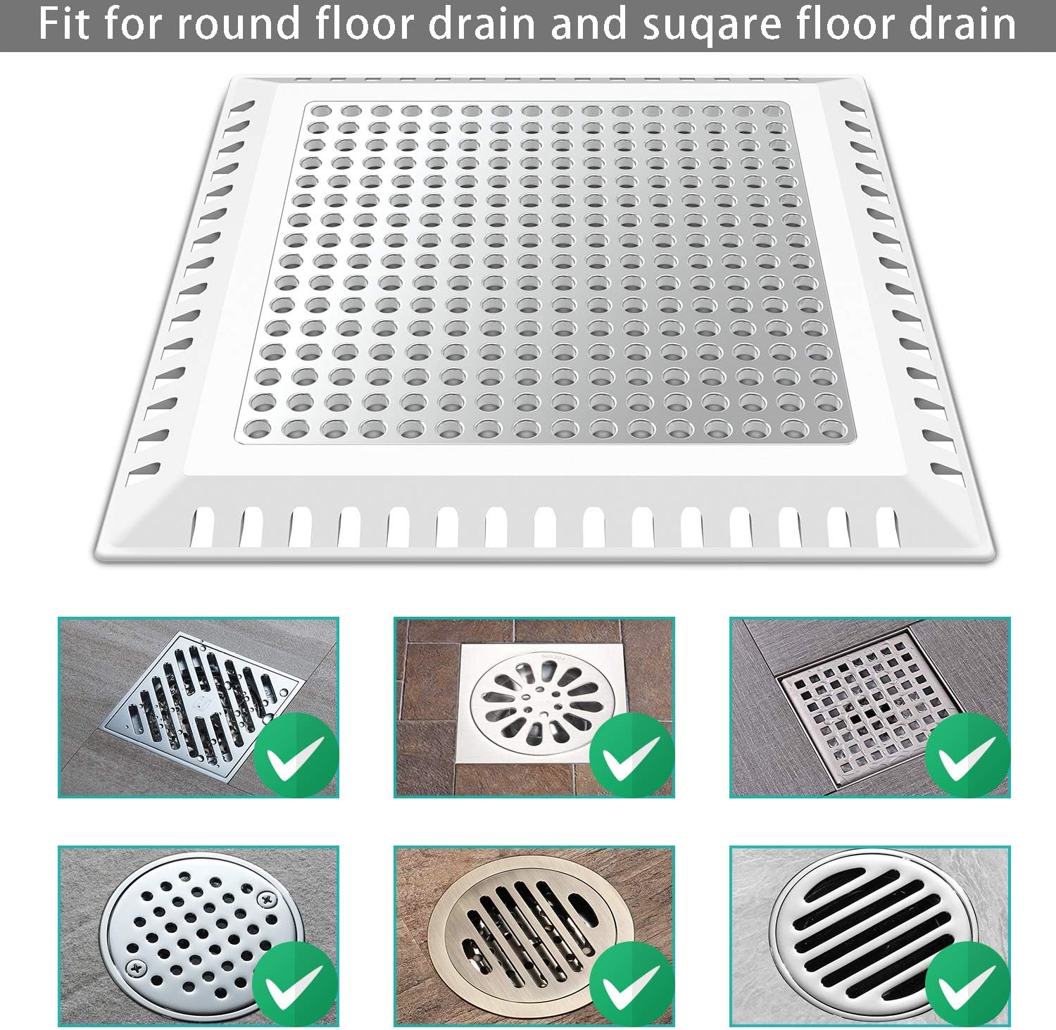 - The shower drain hair catcher is measured 6.85 L x 6.85 W (inches), fit for drain below 6 inch,square shape covers both round and square style flat shower drains,perfect for shower drain. Attention: pls measure your drain before purchase.