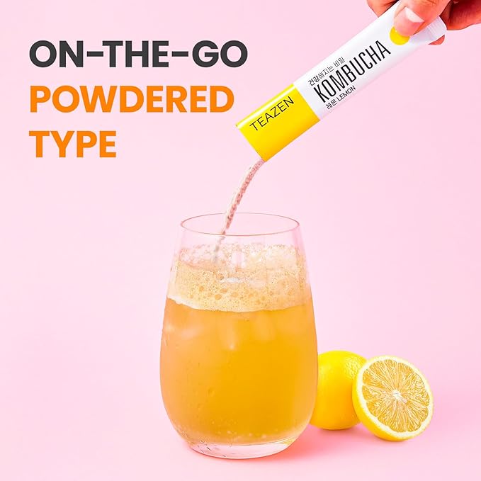 - PORTABLE & SOLUBLE: ON-THE-GO Packet Type Kombucha powder product ensures no worries about the container getting crushed, broken, or leaking. Enjoy it easily and lightly whether you're working out, at the office, or in school, anytime, anywhere. Simply drop one TEAZEN Kombucha packet into cold water (about 8.5oz or 250ml) and mix. TEAZEN Kombucha dissolves in 3 seconds. Very simple and convenient to easily get into the habit of drinking Kombucha.