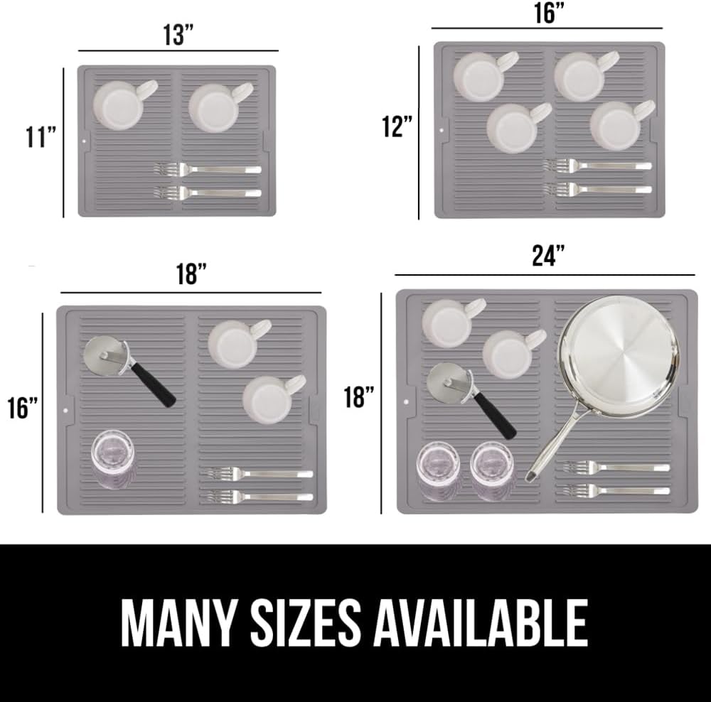 GORILLA GRIP 100% BPA-Free Patented Silicone Dish Drying Mat for Kitchen Counter, 18x16 Inch, Water Catching Ribbed Design, Easy Clean Waterproof Sink Liner, Heat Resistant, Fits Under Rack, Gray