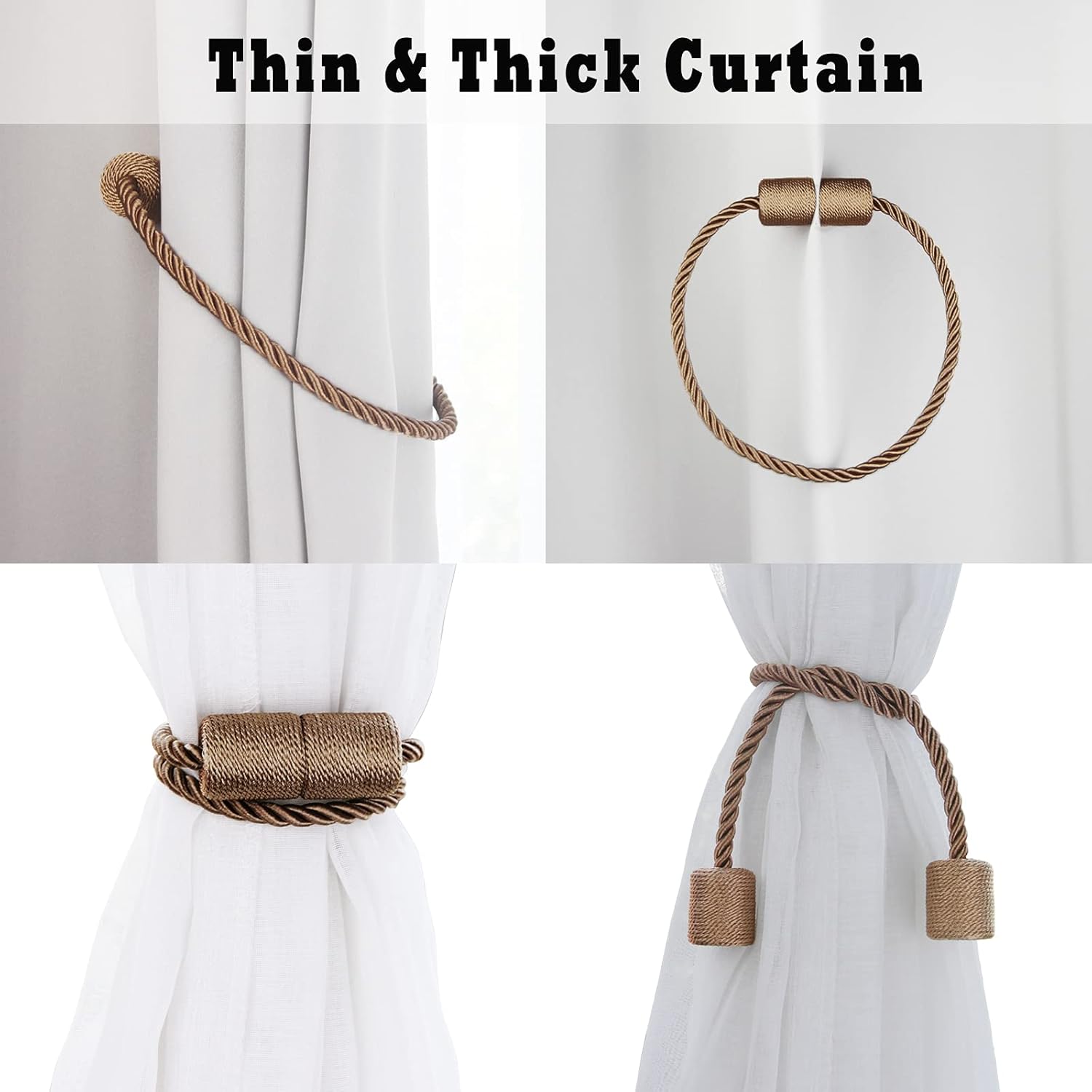 - Our products do not need to use hooks, Will not damage your walls. when you are not using tie backs for curtains, you can attach it to any position of the curtain without worrying that magnetic curtain holdbacks will be lost for the next use. Attractive modern look of these rope curtain tiebacks, perfectly match with your bedroom, living room, office and so on, and meet daily use. Best as a gift or for self use.