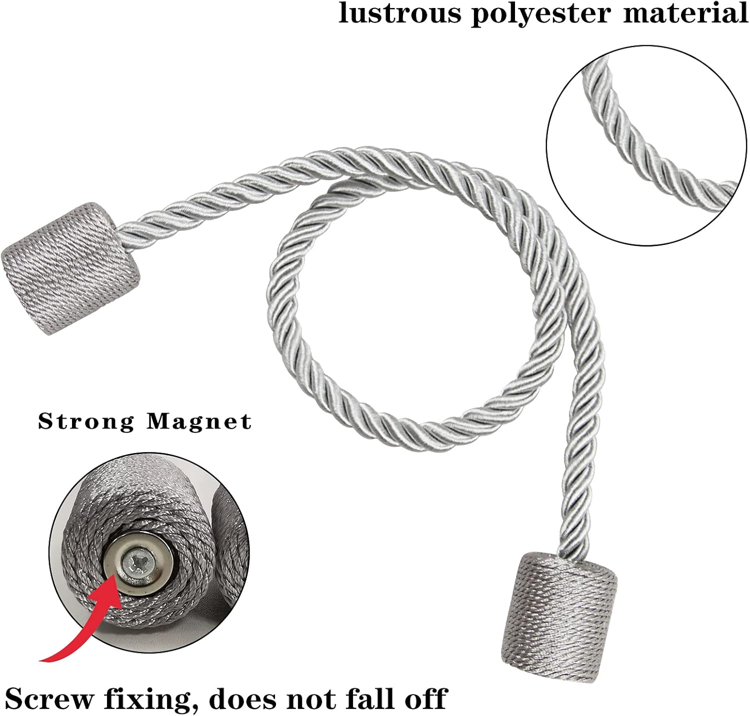 2 Pack Grey Strong Magnetic Curtain Tiebacks Outdoor Elegant Decorative Tie Backs Modern Rope Tiebacks for Drapes Window Curtain Holdbacks for Draperies