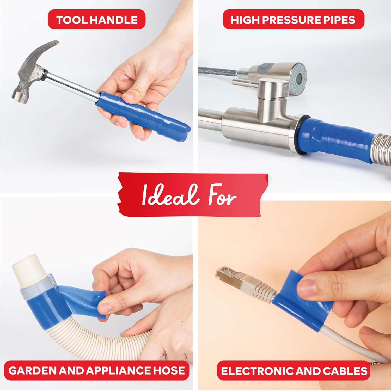 - DESIGNED TO TAKE A BEATING. We created our Blue Silicone Plumbers' Heat and Leak Tape to develop its tensile strength the more you stretch it, thus preventing it from breaking or puncturing against extreme temperature and pressure. This is why it works great for outdoor repairs as a self-sealing silicone tape and self-bonding tape for high-pressure pipe leaks!