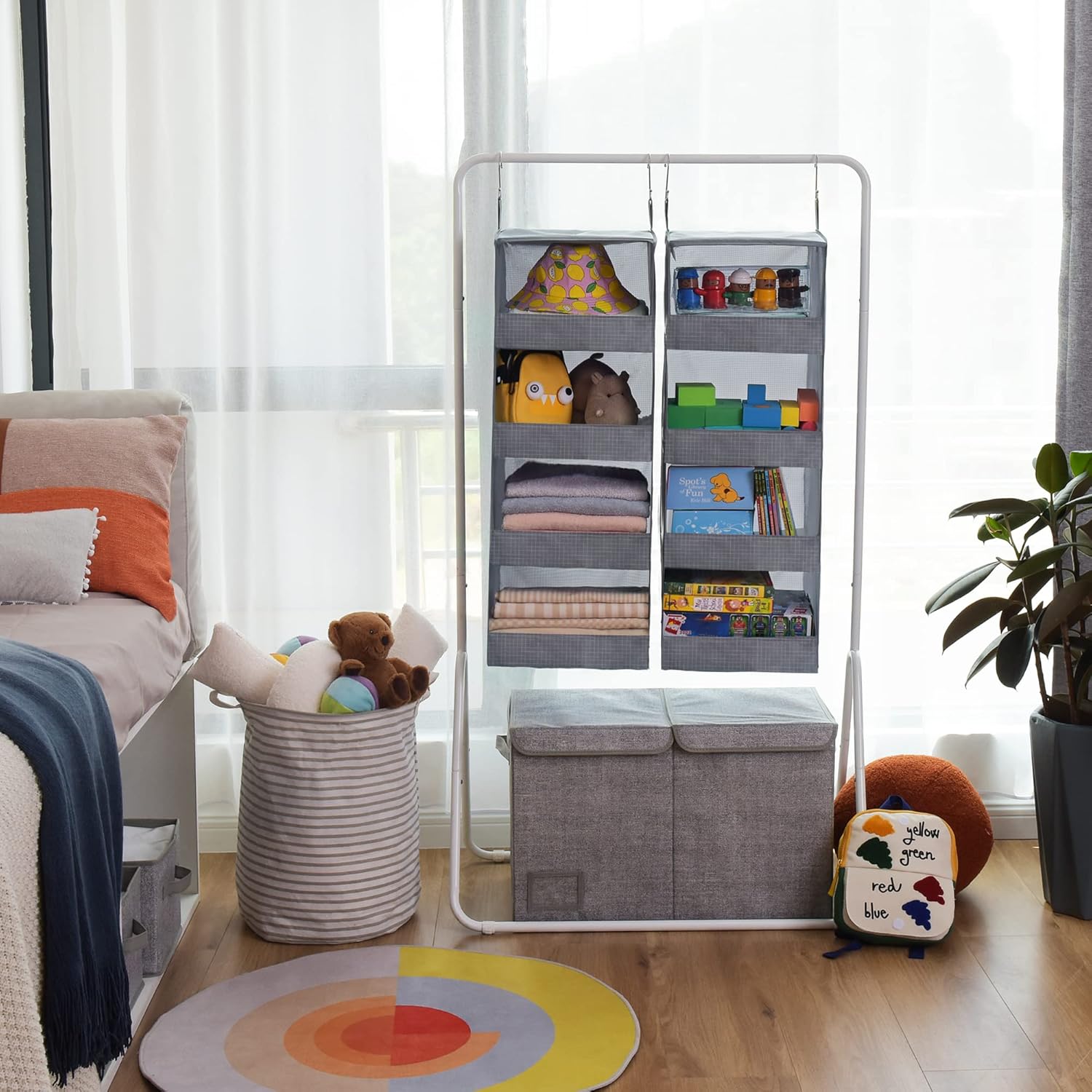 - Foldable and Portable: The fabric hanging closet organizer can be collapsed flat for space-saving when not in use or taken to travel. Easy to carry and install, very practical in car, travel, picnic, trailer.