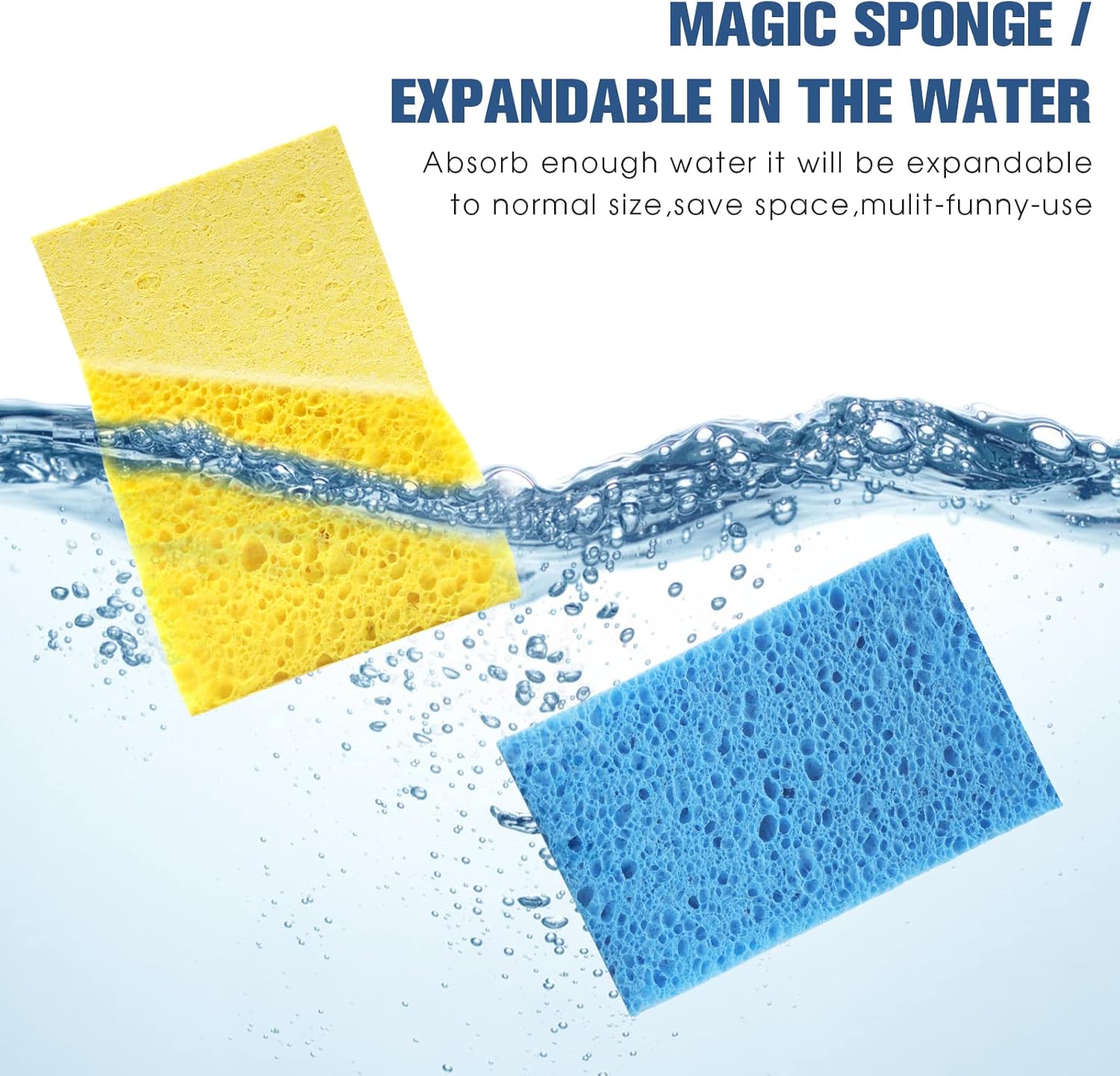 Compressed Cellulose Kitchen Sponges 24Pack,Non-Scratch Biodegradable Natural Sponge Scrub for Dishes Cleaning,Funny Colorful DIY Sponge for Kids