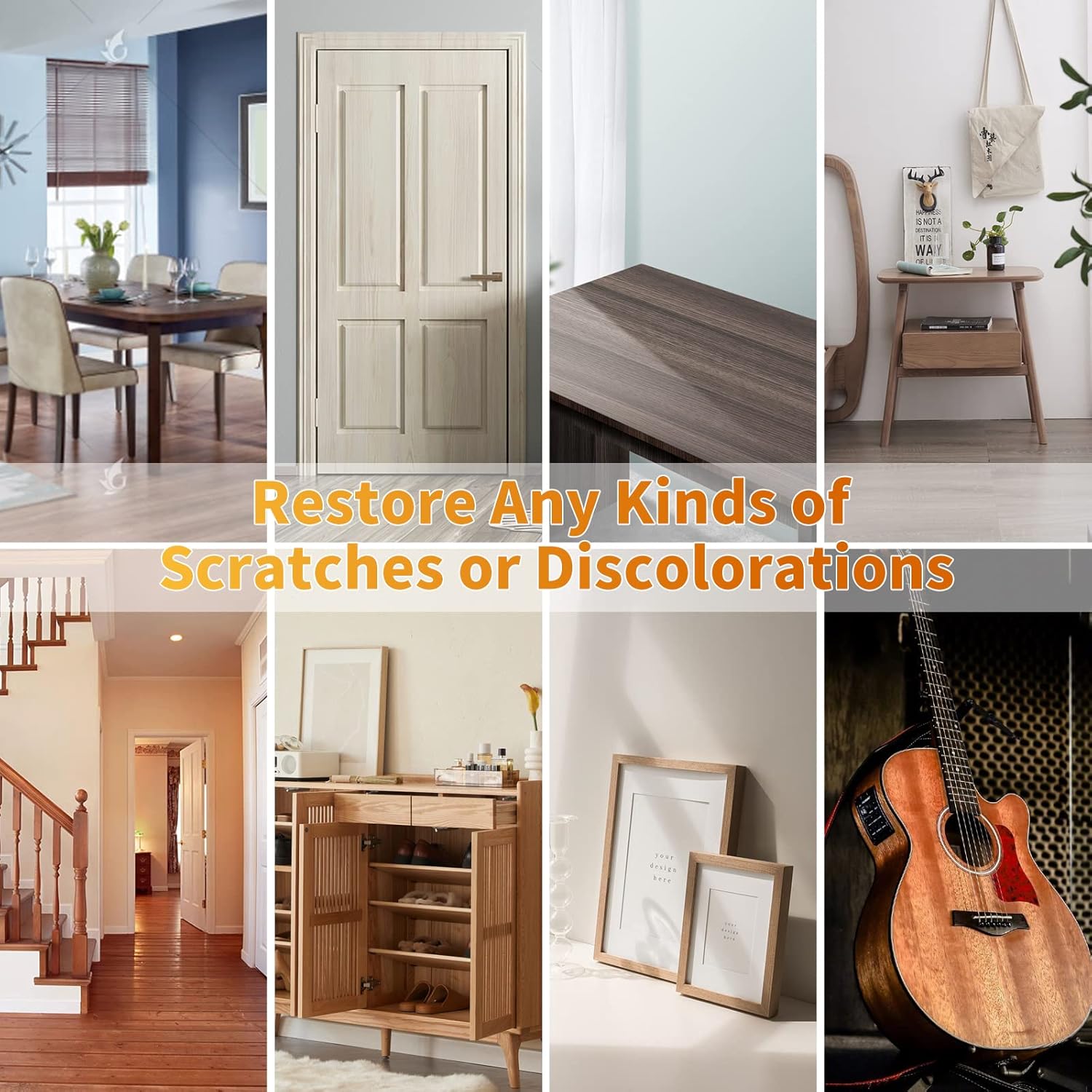 - EXCELLENT FIX ANY COLOR WOOD: The hardwood floor scratch repair kit can restore nicks, stains, scuffs and discoloration on any wood floors and furniture like beds, shelves, cabinets, tables, frames, doors, laminate, baseboard, veneer and much more. This is ideal for rejuvenating your furniture