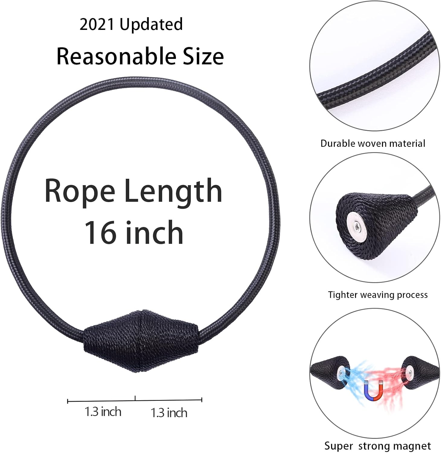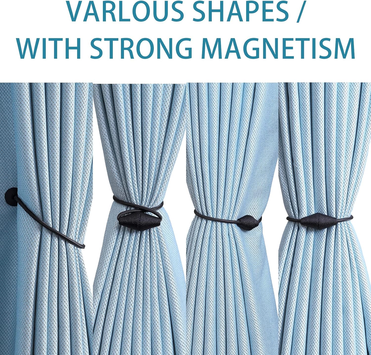 - WIDE APPLICATION: The length and binding method can be adjusted freely according to the thickness of the curtain. It is widely used in curtains in different places such as bedroom, living room, dining room, bathroom, kitchen, office, courtyard and so on. Different colors of magnetic drape tiebacks adorn your curtains, which can change different styles, giving the curtains a unique charm
