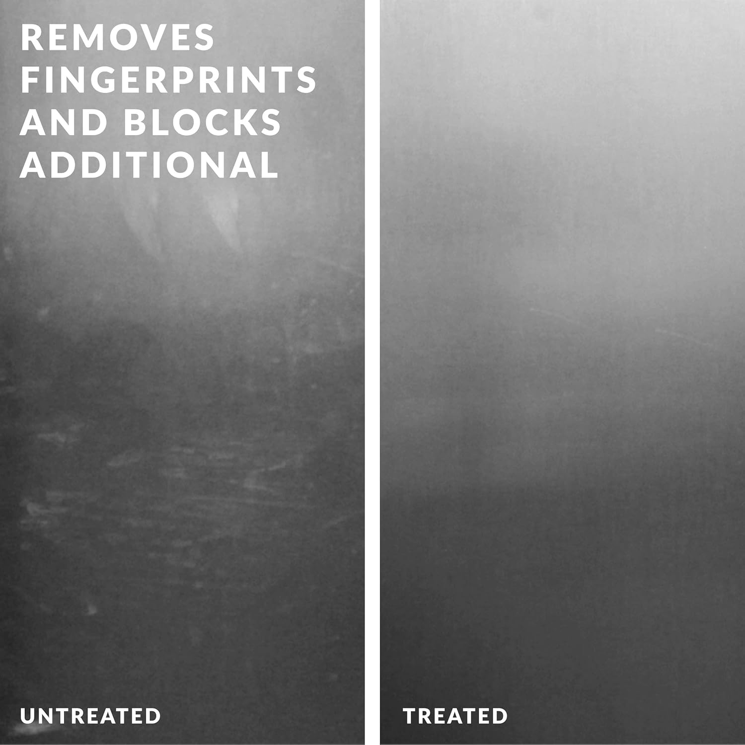 - Blocks Fingerprints - The cleaner formula removes existing fingerprints, and blocks additions fingerprints; rich cream spray clings to vertical surfaces