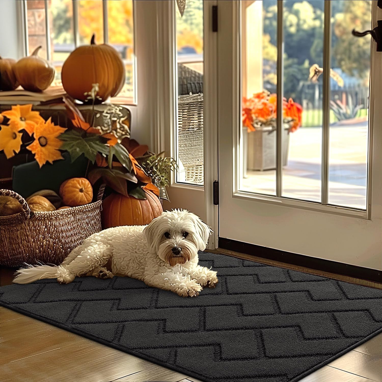 hicorfe Indoor Door Mat,Non Slip Door Mats,32"x48" Front Back Door Mat Rubber Backing,Absorbent Resist Dirt Entrance Inside Floor Mats for Entryway Washable Low-Profile(Charcoal)