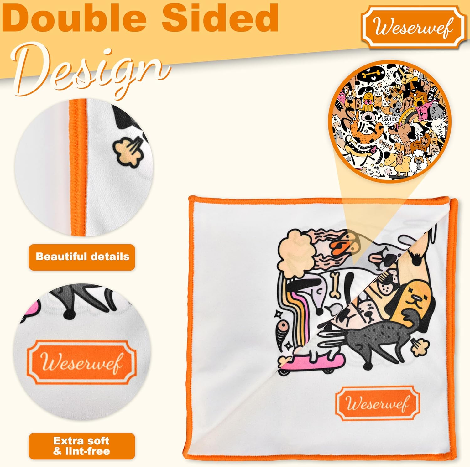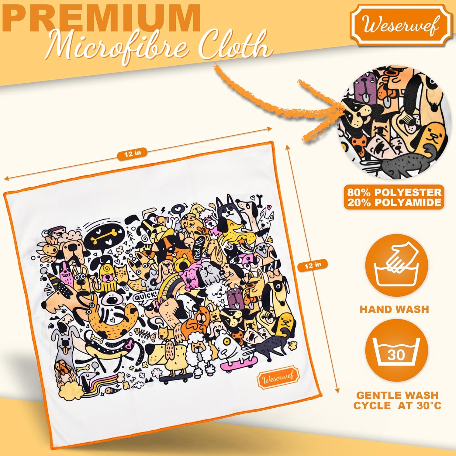 WESERWEF Design Microfiber Glasses Cleaning Cloth – Premium Cleaning Cloth for Eyeglasses, Screens, Tablets, Cameras & Lenses, 12" x 12", Ultra-Soft & Scratch-Free (Funny Dogs)