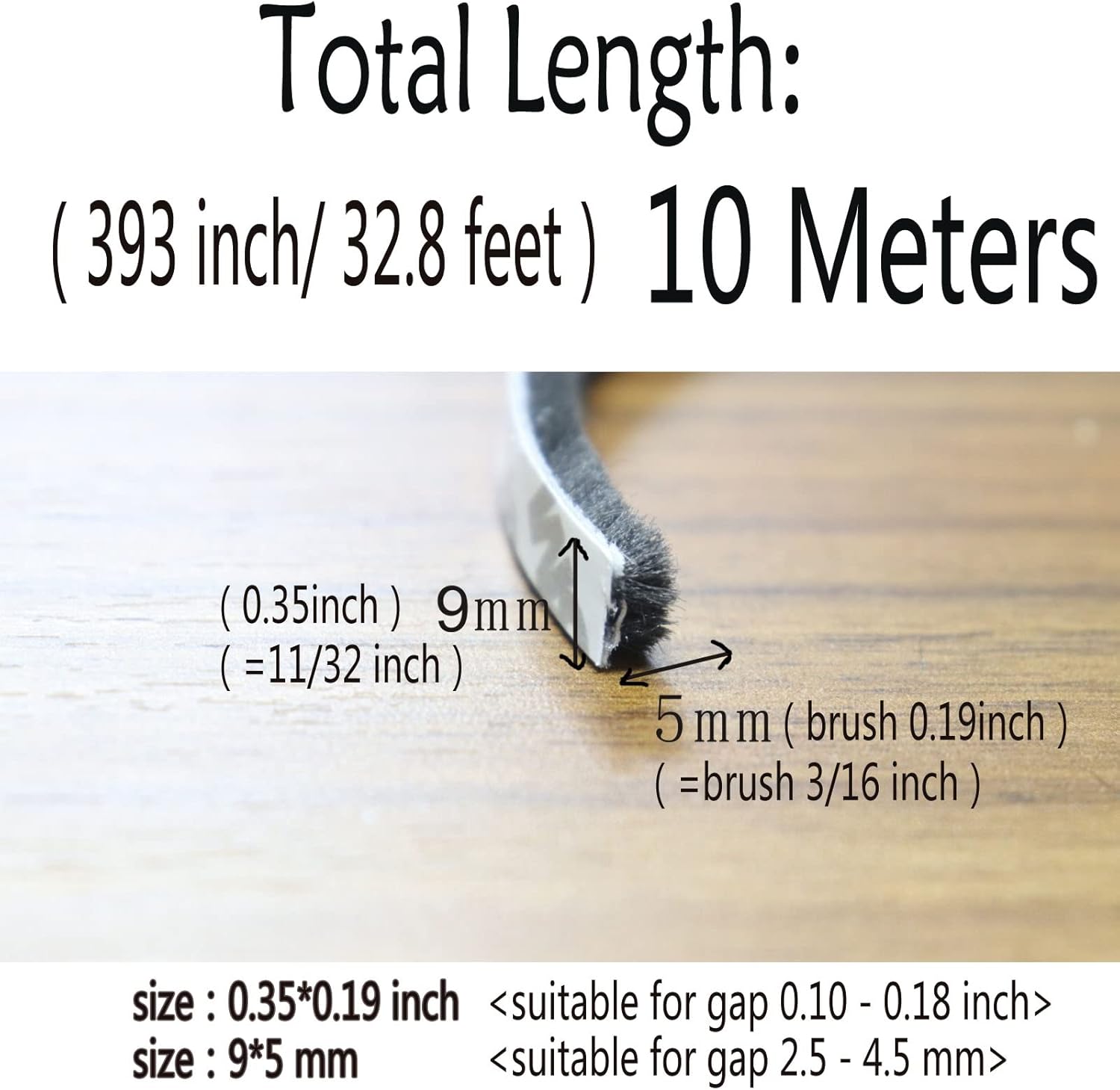 Weather Stripping Brush for Sliding Windows/Doors Frame Side,Pile Self Adhesive Weatherstrip Seal Strip Sealer Draft Stoppers (33ft x11/32 Backing x 3/16 Brush inch, Black)