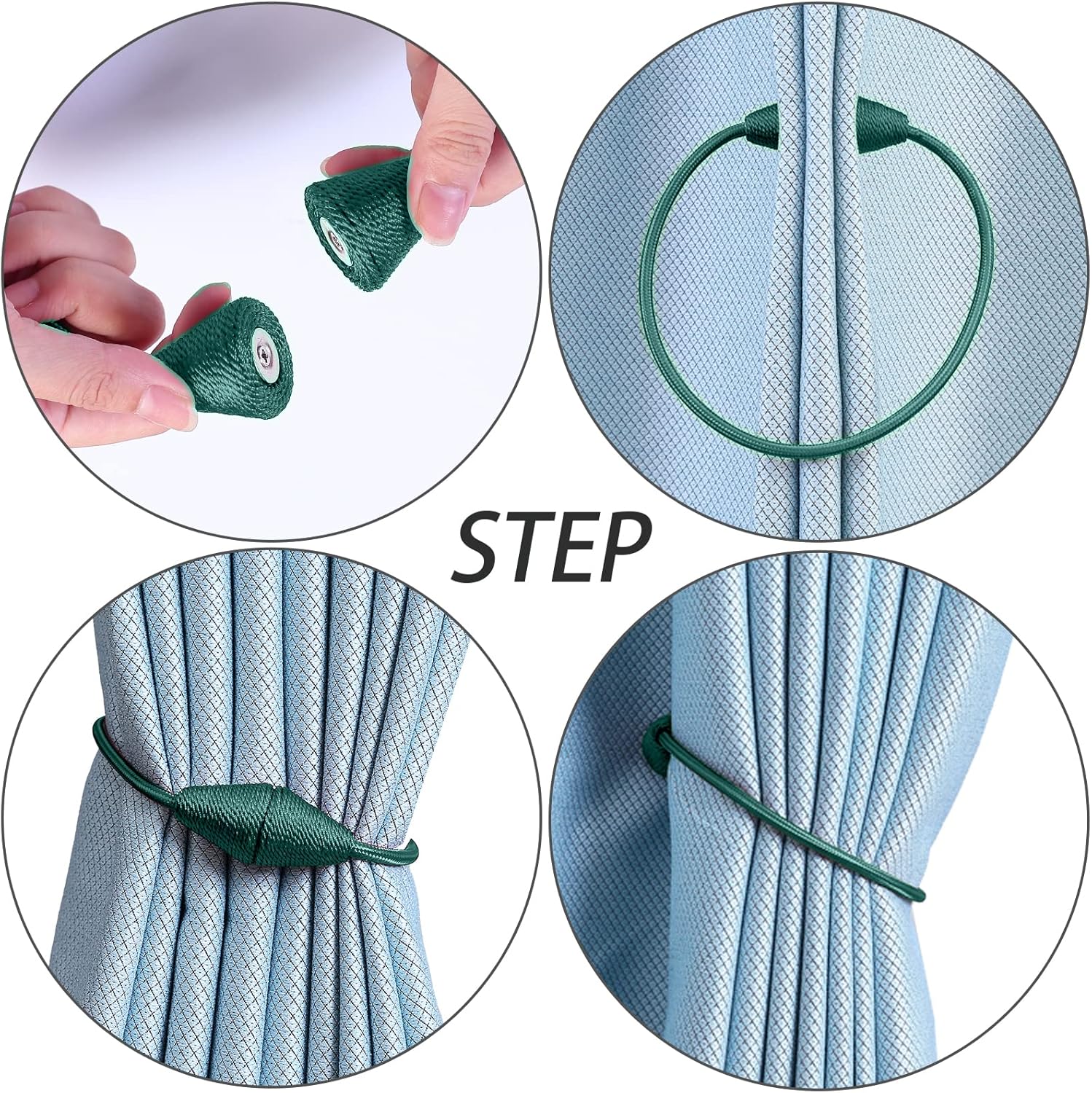 - WIDE APPLICATION: The length and binding method can be adjusted freely according to the thickness of the curtain. It is widely used in curtains in different places such as bedroom, living room, dining room, bathroom, kitchen, office, courtyard and so on. Different colors of magnetic drape tiebacks adorn your curtains, which can change different styles, giving the curtains a unique charm