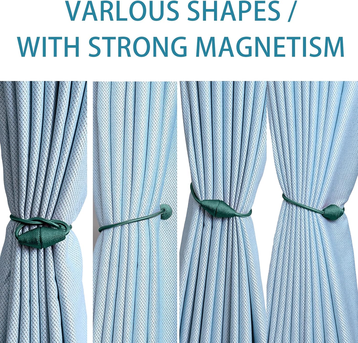 2 PCS Magnetic Curtain Tiebacks, European Style Convenient Drape Tie Backs Holdbacks for Thin or Thick Home & Office Window Draperies, No Tools Required (Teal)
